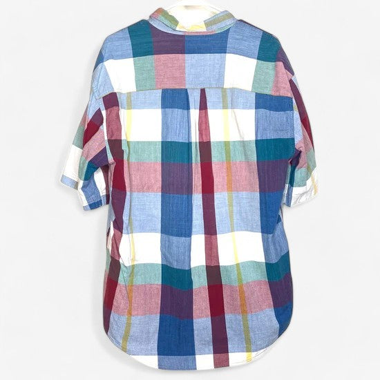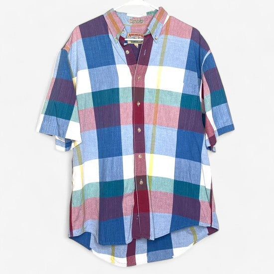 Vintage Adirondack Men's Multicolor Plaid Short Sleeve Button-Up Casual Shirt - Size L