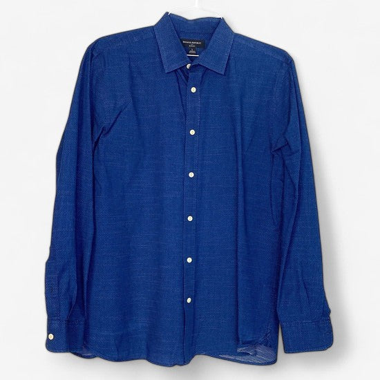 Banana Republic Men's Size L Blue & White Dotted Slim Fit Dress Shirt