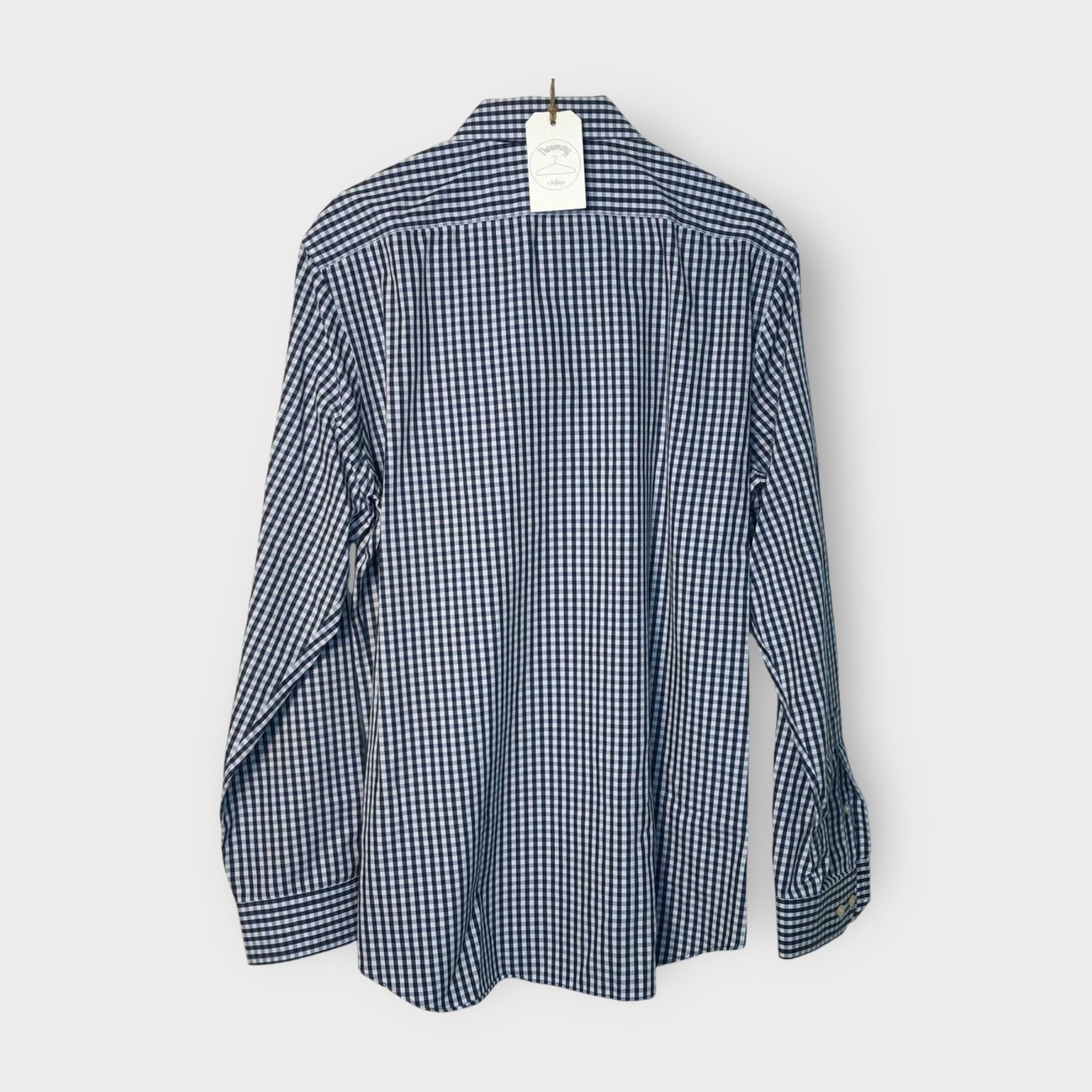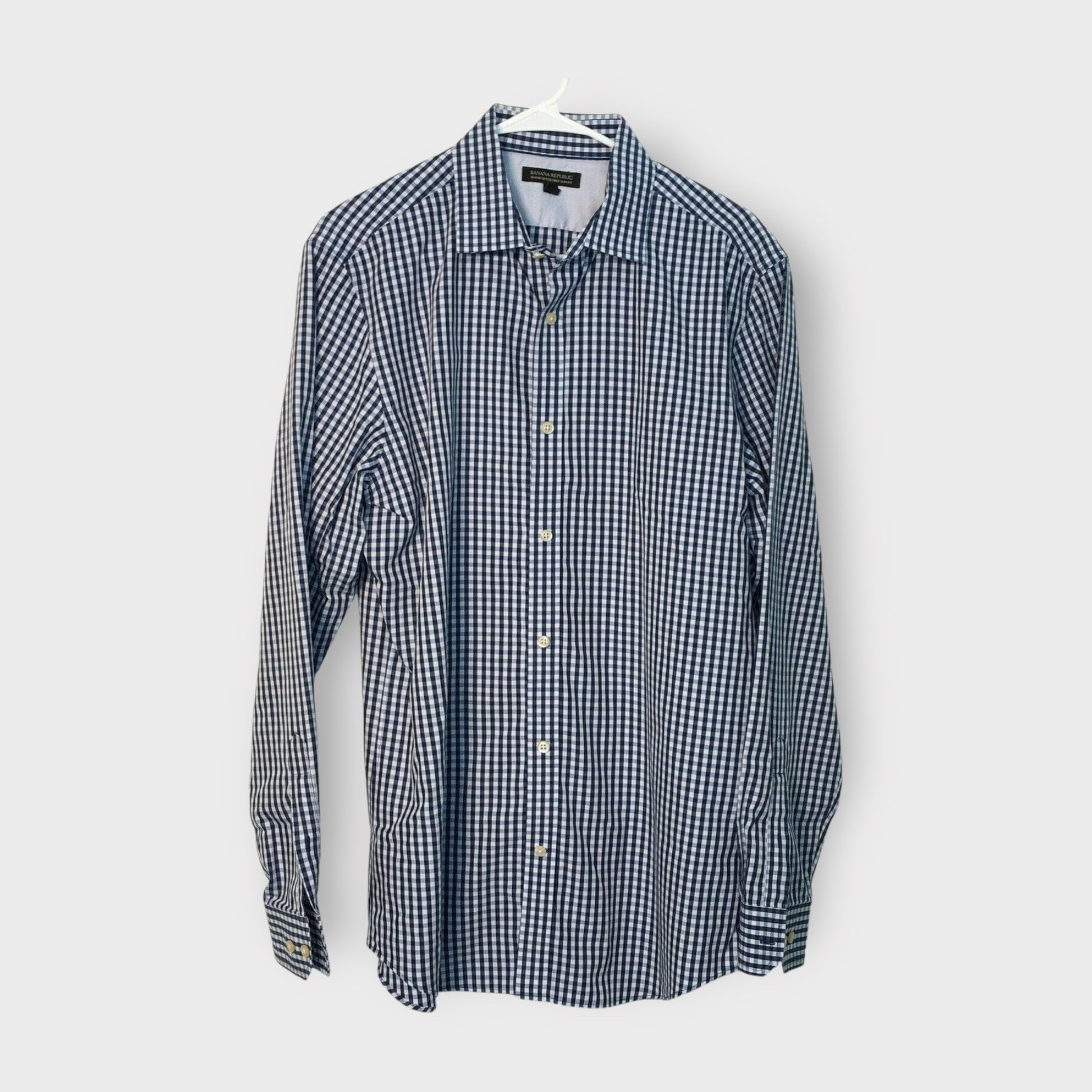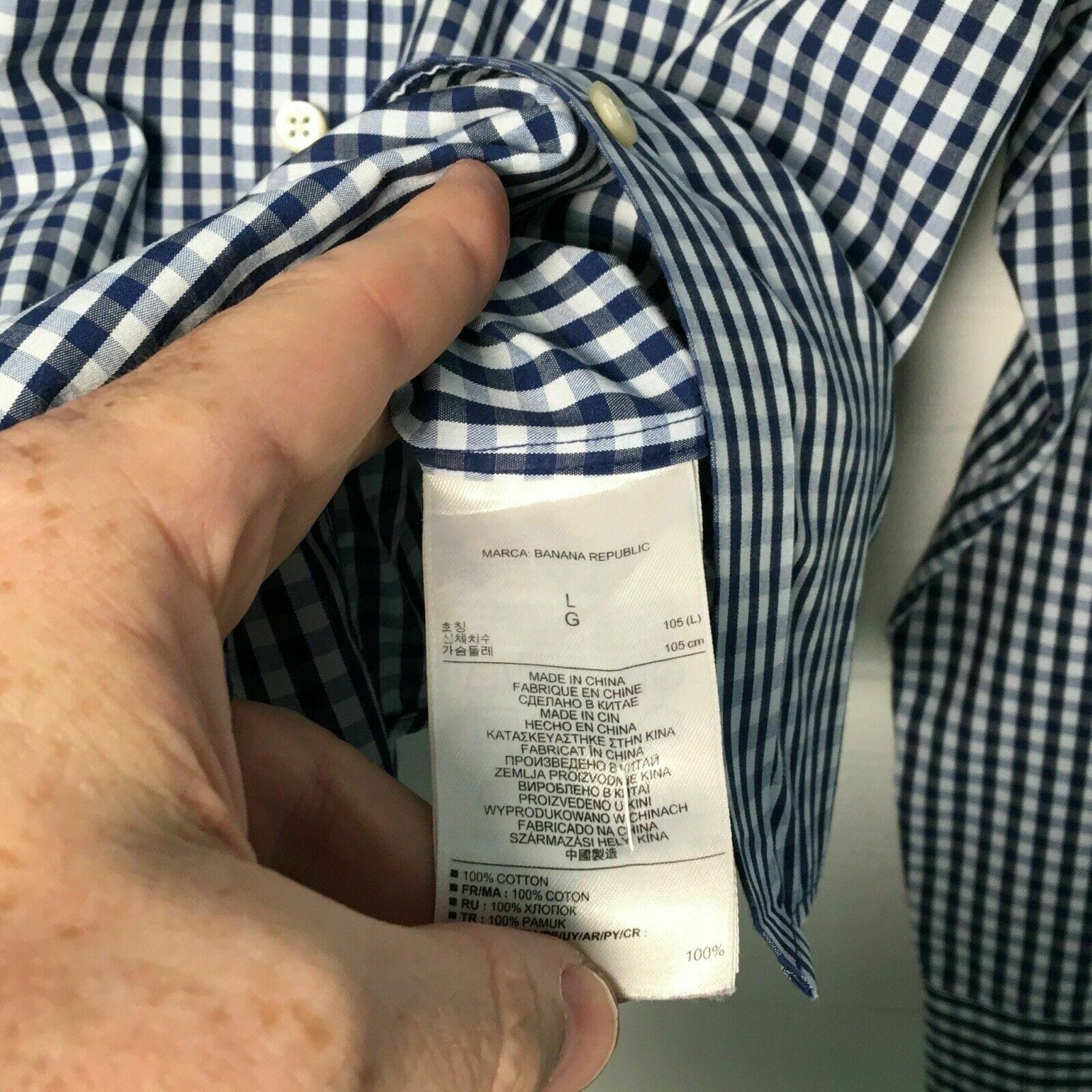 Banana Republic Shirt - Mens Gingham Check Button Down | Large | Blue White Cotton Plaid | EUC