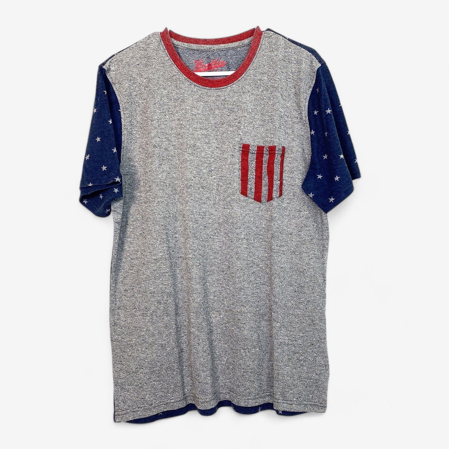 Brooklyn Cloth Men's Heather Gray & Navy Blue Stars & Stripes T-Shirt - Size XL - Pre-Owned