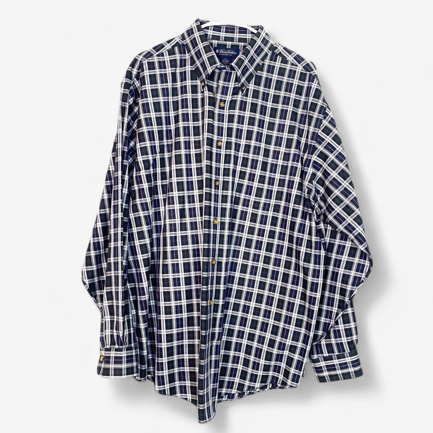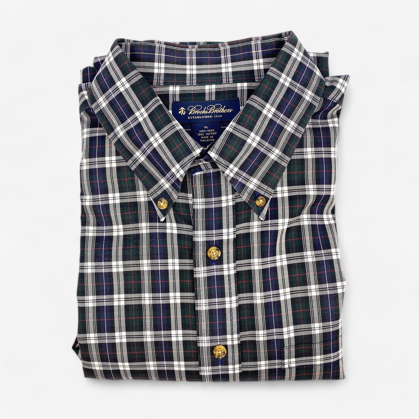 Brooks Brothers Men's Green and White Plaid Long Sleeve Dress Shirt - Size XL