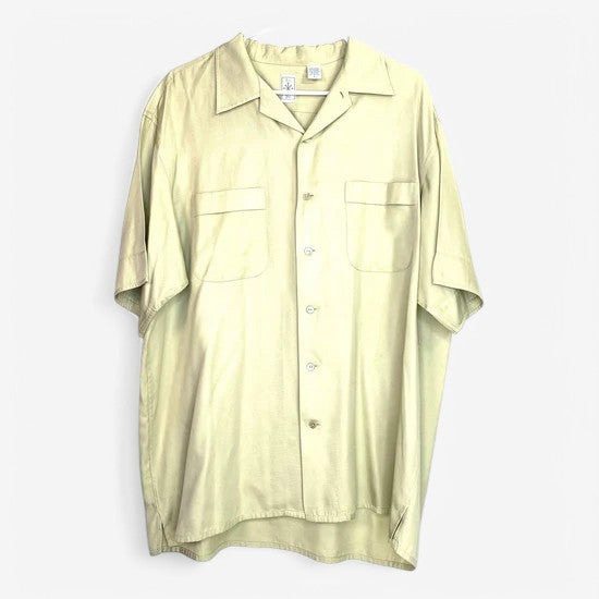 - Design: Features a light lime green hue with a classic button-up front and short sleeves, providing a fresh and versatile look.