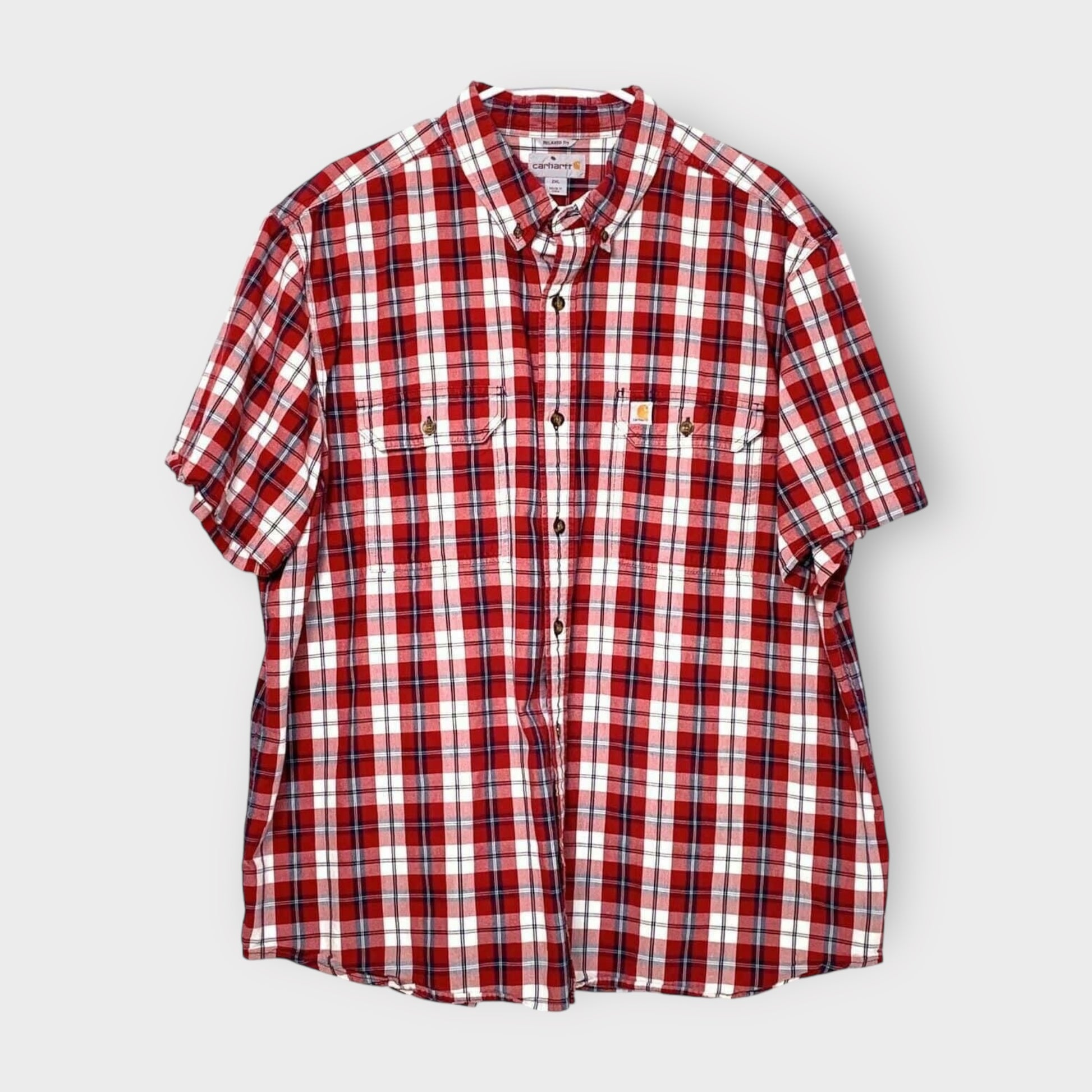Carhartt Men's Button-Up Short Sleeve Plaid Shirt - Red/White - Size 2XL