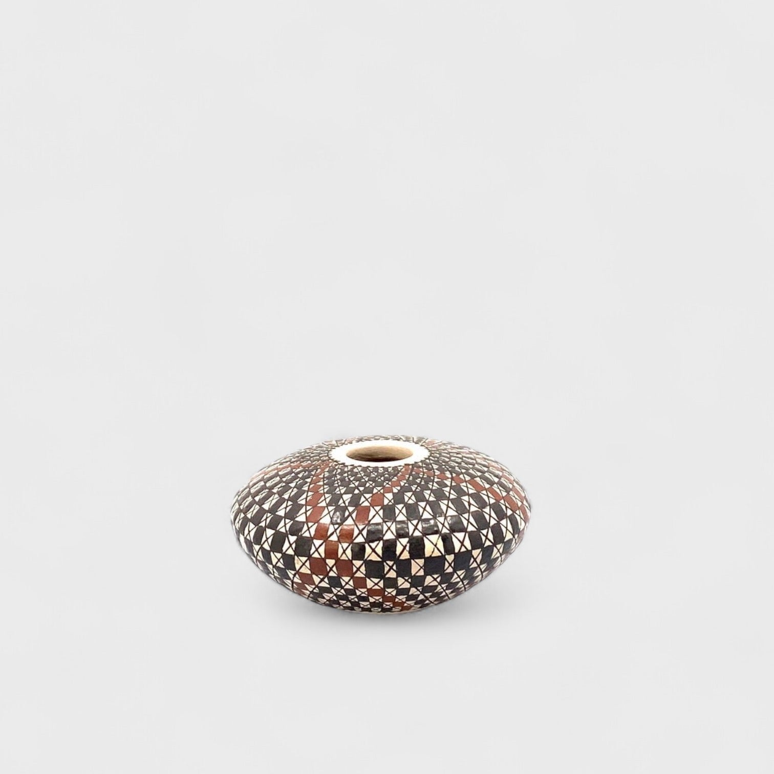 Carmen Veloz Seed Pot - Mata Ortiz Paquimé Pottery | Handcrafted | 3” x 2” | Black, Brown, White Squares Design | Collectible