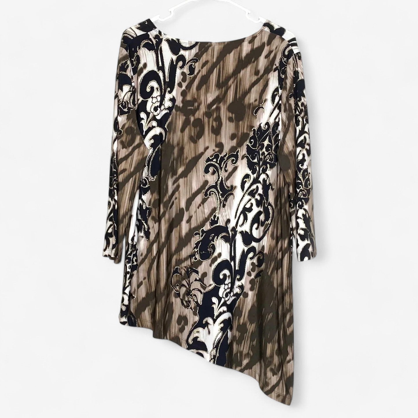 Chico's Travelers Women's Beige & Brown Animal Print Top - Size 2 - ¾ Sleeve