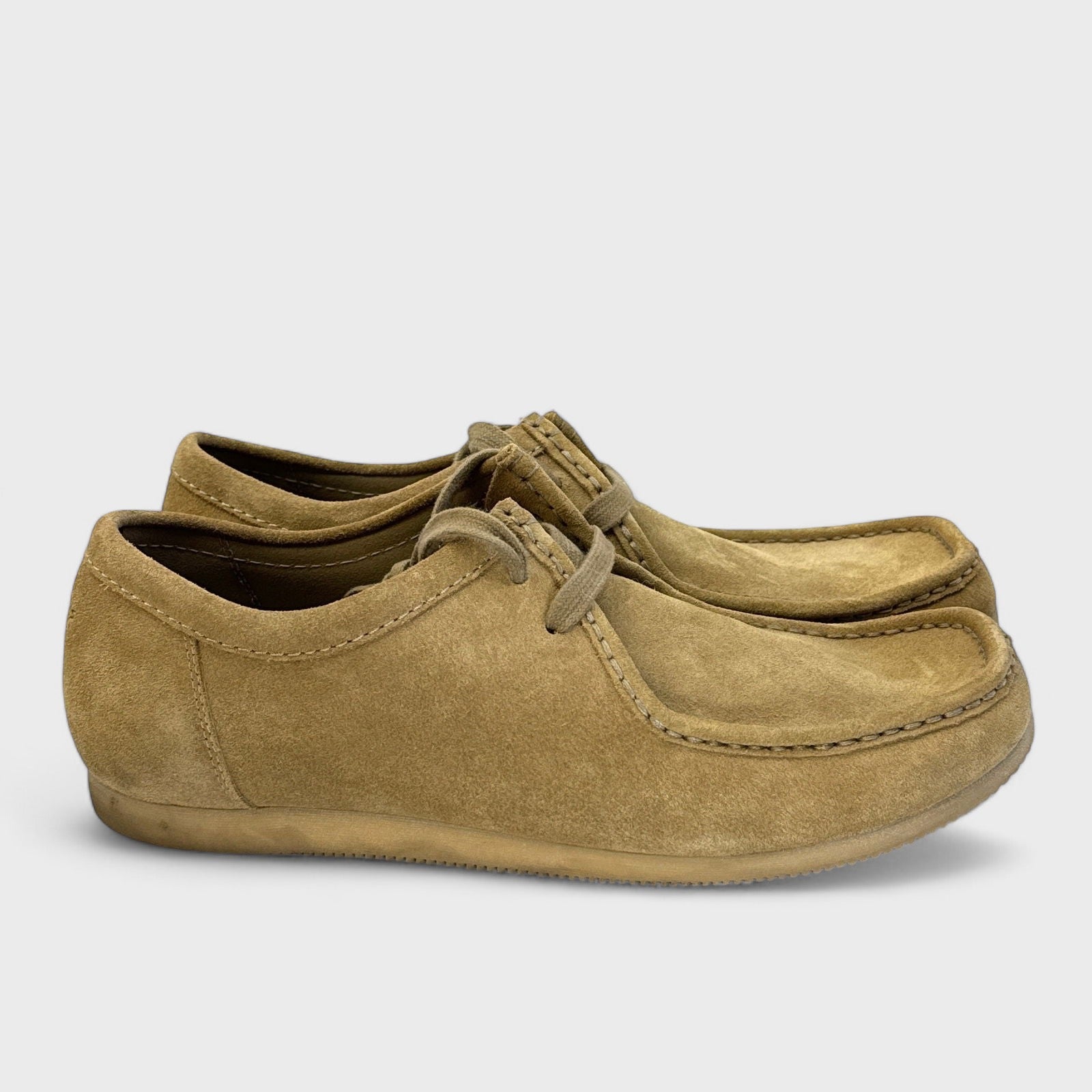 Step into classic style and comfort with these Clarks Wallabee Low shoes. Featuring the iconic moccasin-inspired design, these shoes are crafted from beige suede and provide a timeless look perfect for casual wear. The shoes offer a soft, flexible feel, making them ideal for all-day comfort.
