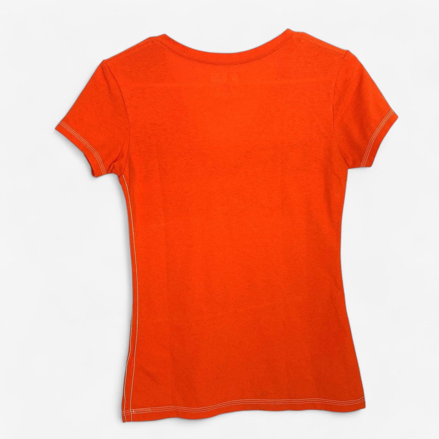 Elevate your game day experience with the stunning Denver Broncos NFL Team Apparel Womens Size S Orange V-Neck T-Shirt. This vibrant orange tee, adorned with a touch of blue sparkle, is not just a piece of clothing; it’s a statement of your unwavering team spirit. Crafted from a soft cotton blend, it promises all-day comfort whether you're cheering from the stands or enjoying a casual day out. The flattering V-neck design and short sleeves make it a versatile addition to your activewear collection, perfect for any occasion.