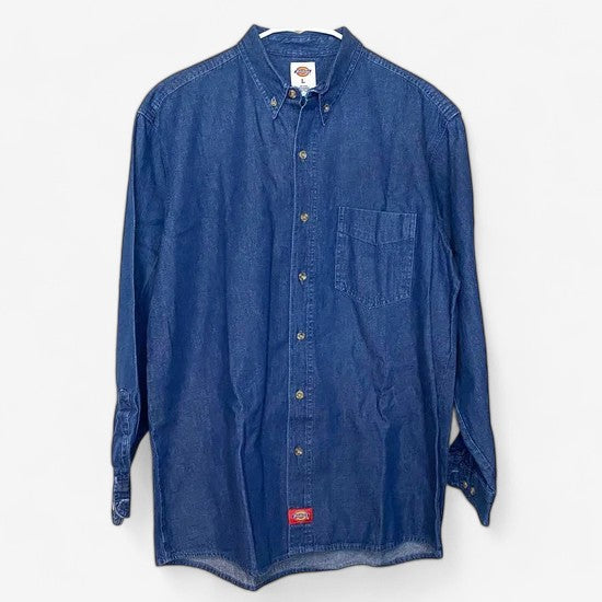 Dickies Men's Blue Denim Button-Up Long Sleeve Shirt - Size L