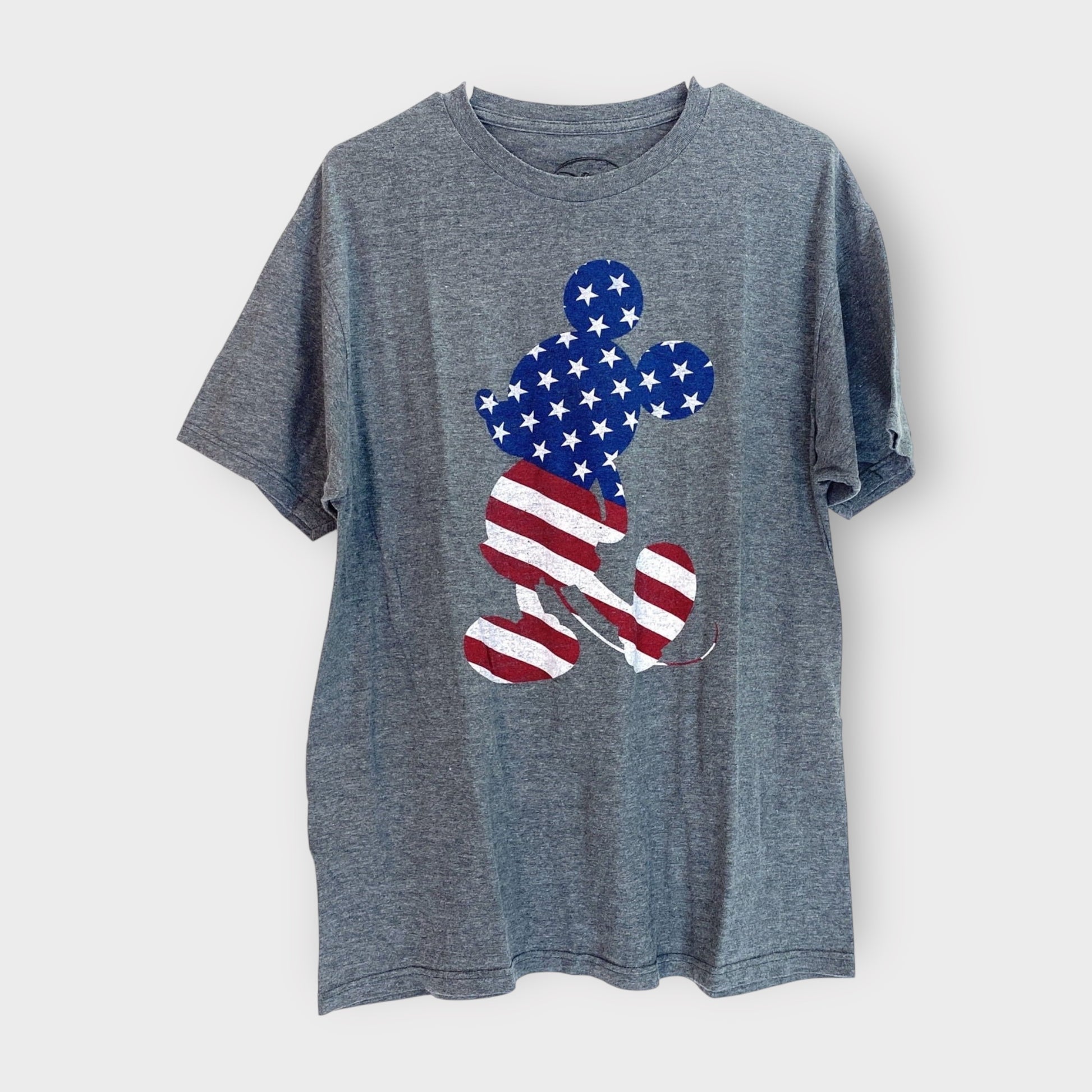 Disney Men's Mickey Mouse American Flag Silhouette T-Shirt - Gray - Size L - Pre-Owned