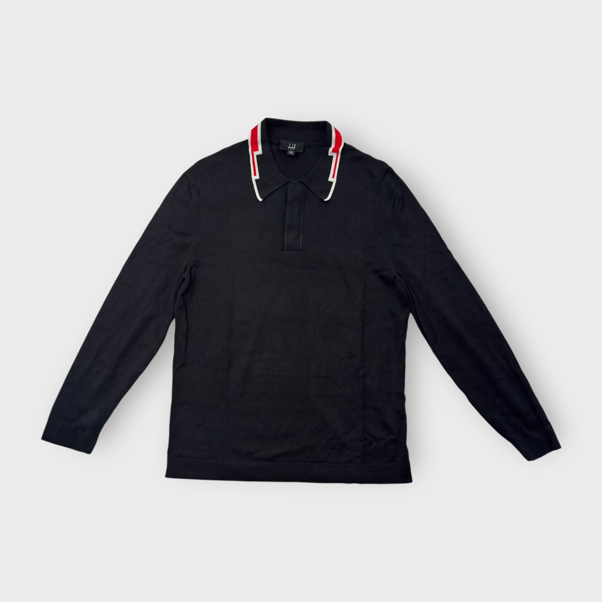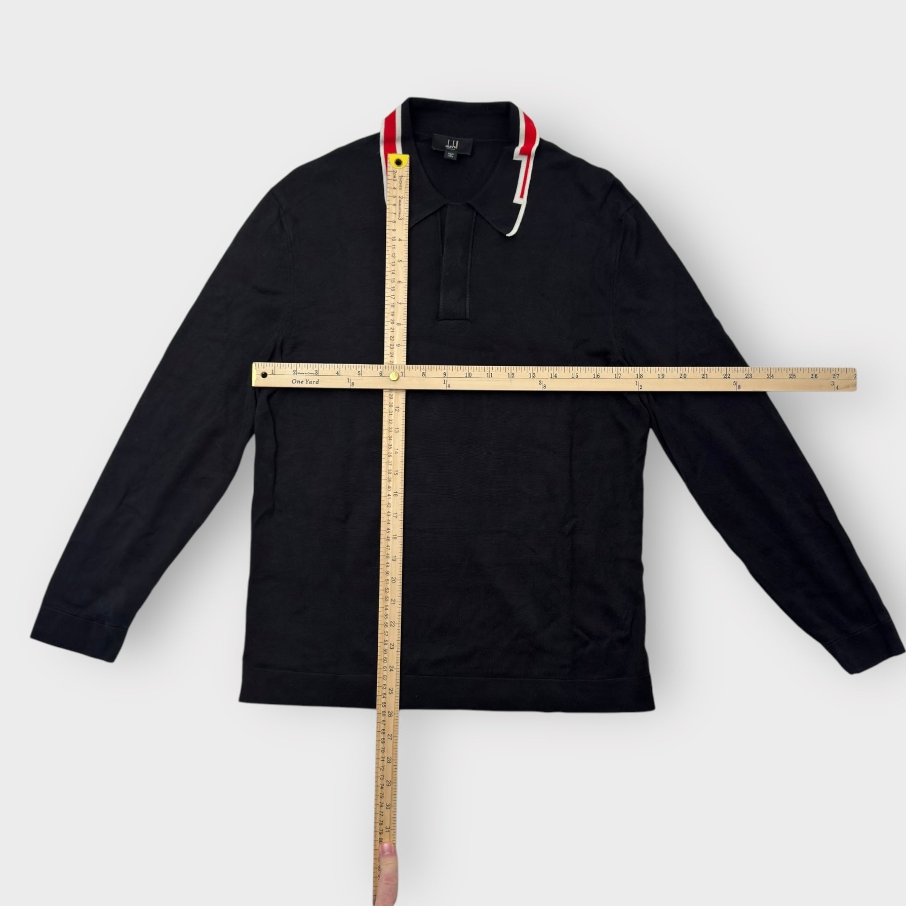Dunhill Men's Black Silk Long Sleeve Polo Shirt - Size S