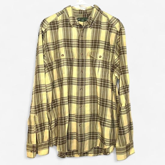 Eddie Bauer Men's Yellow, Black, and Gray Plaid Short Sleeve Button-Up Shirt - Size L