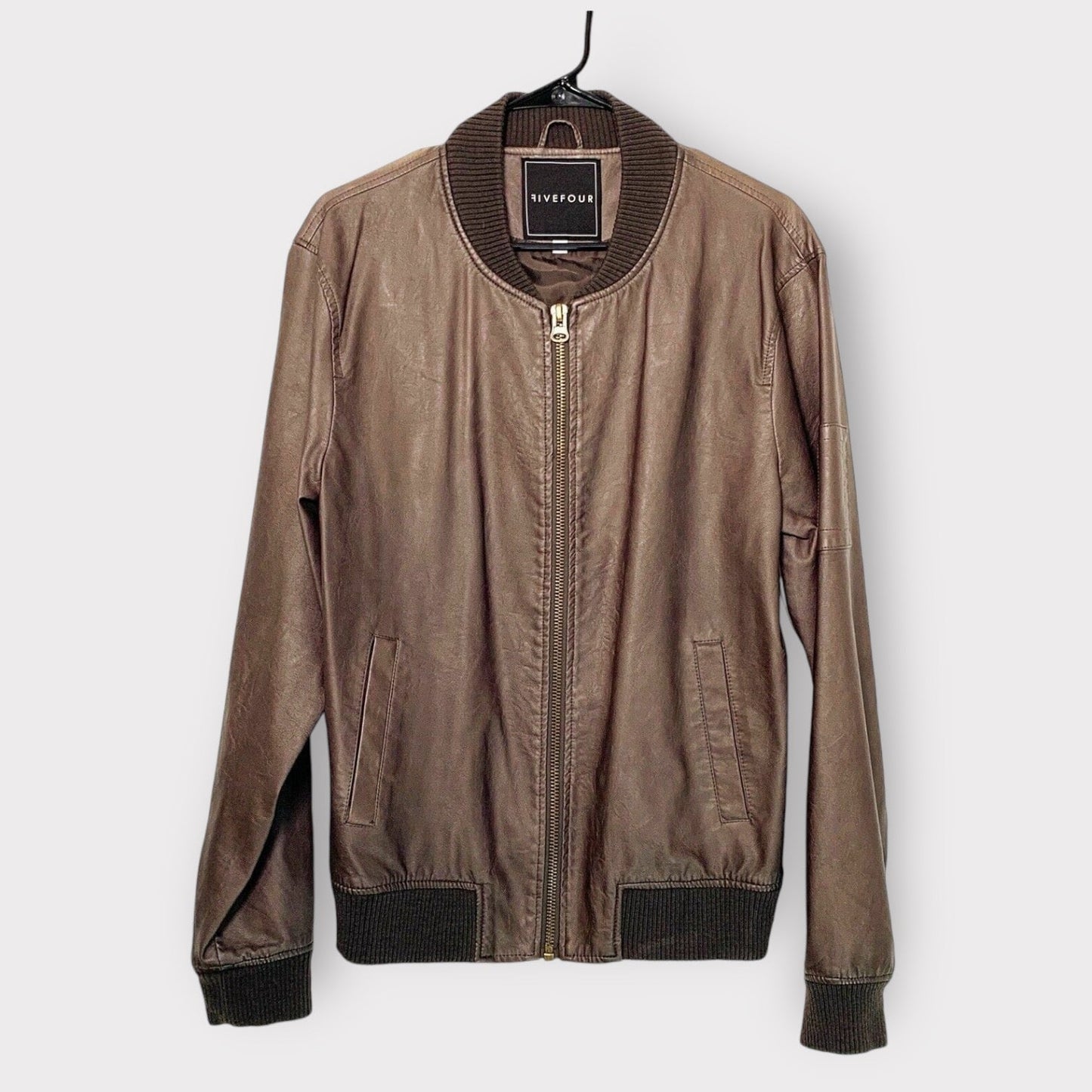 Five Four Men’s Brown Faux Leather Bomber Jacket | M (38-40) | EUC