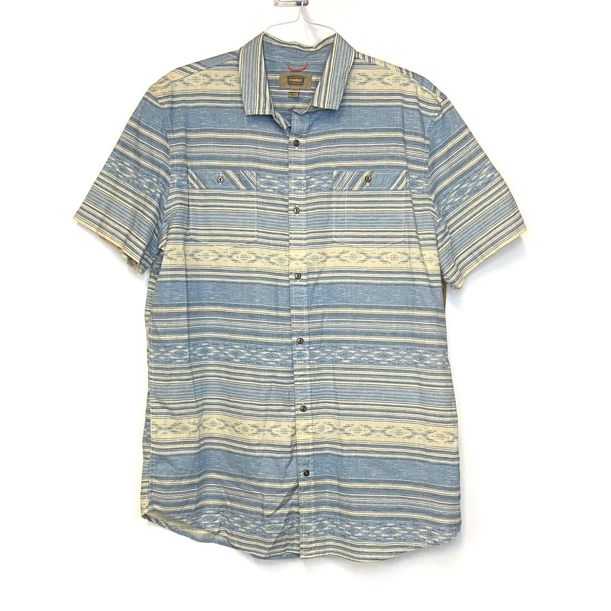 Foundry Supply Mens Size XLT Blue Cream Striped Shirt Casual Button-Up S/s
