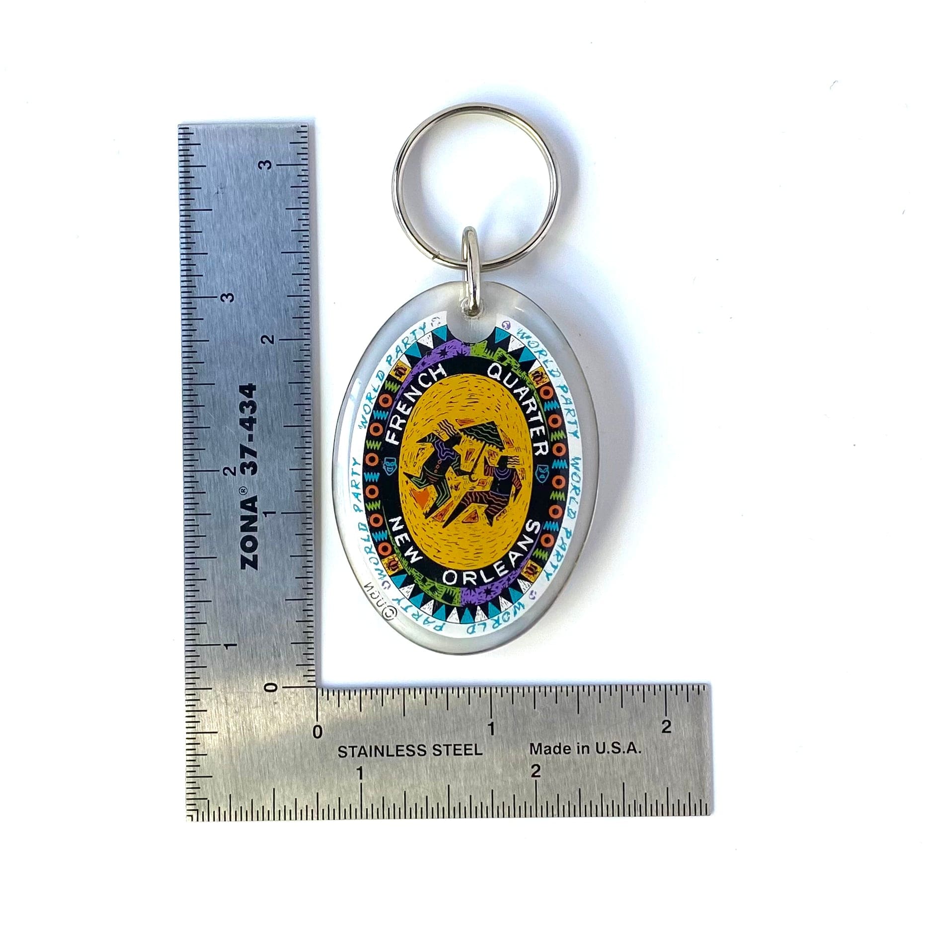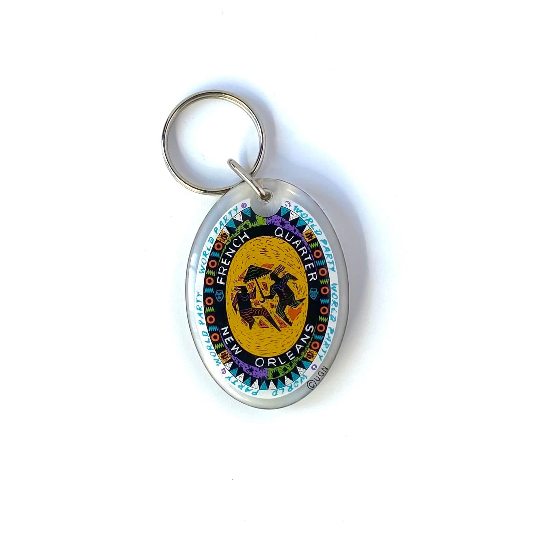 “French Quarter New Orleans World Party” Travel Souvenir Keychain Key Ring Oval Clear Acrylic
