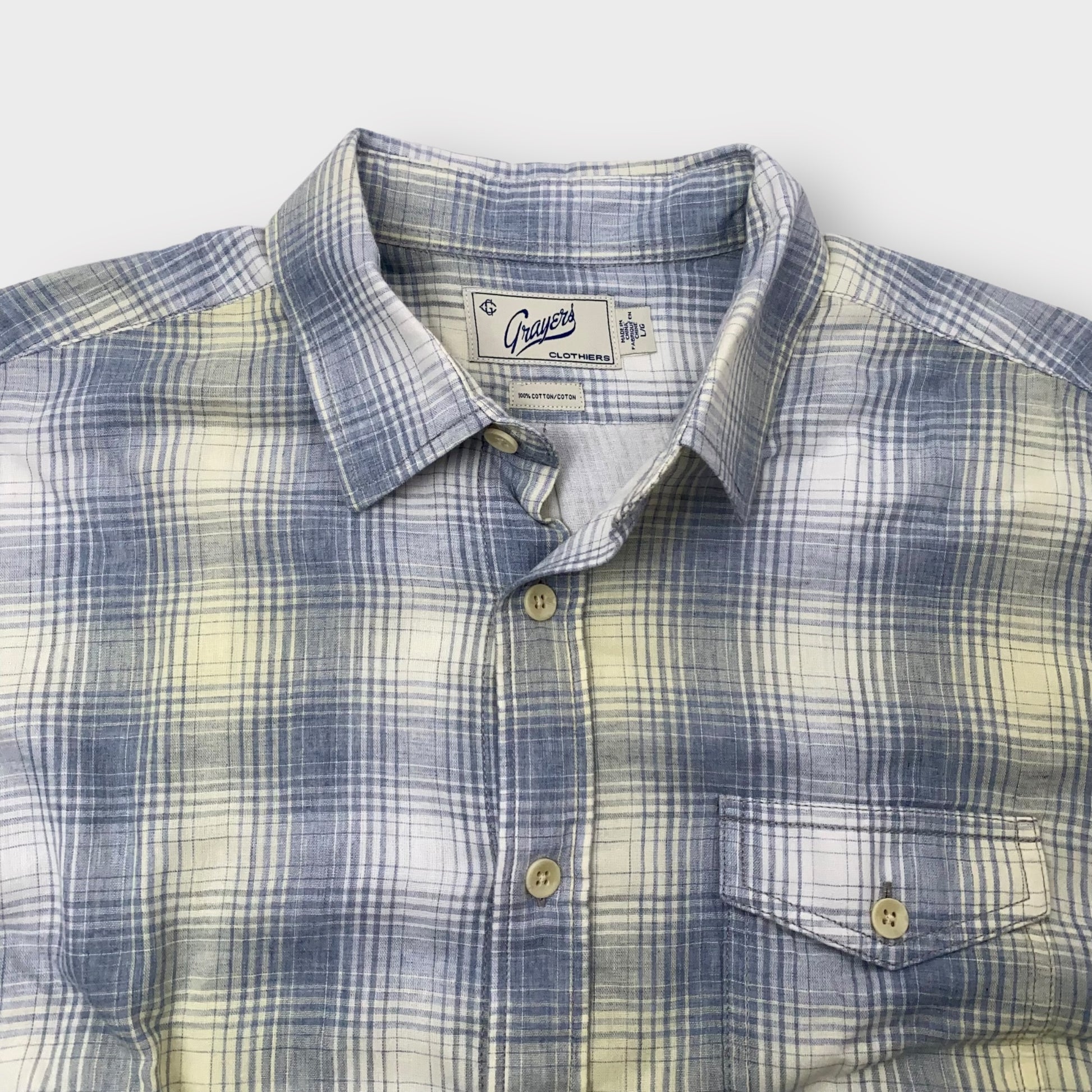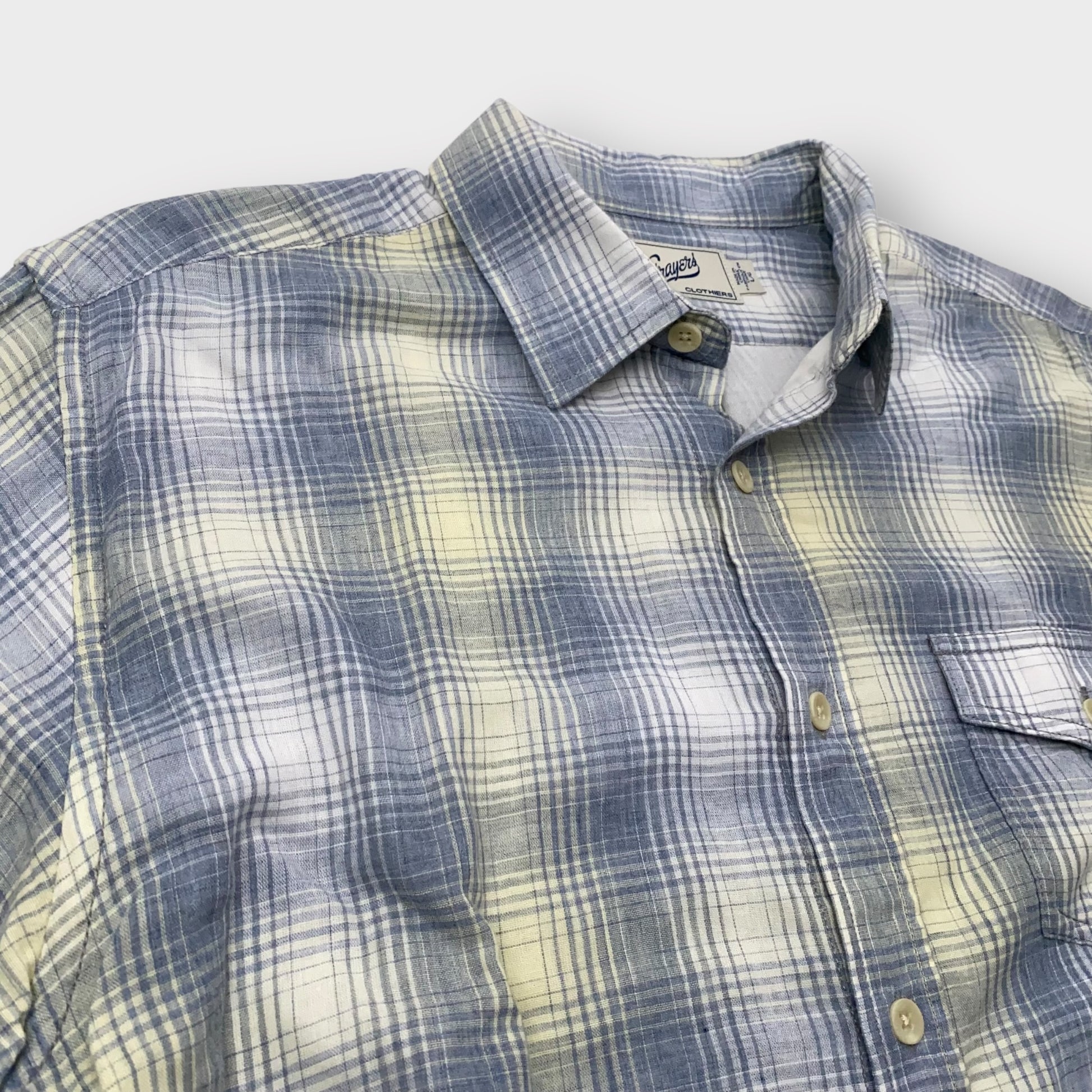 Grayers Men's Blue & White Plaid Flannel Long Sleeve Button-Up Shirt - Size L - Pre-Owned