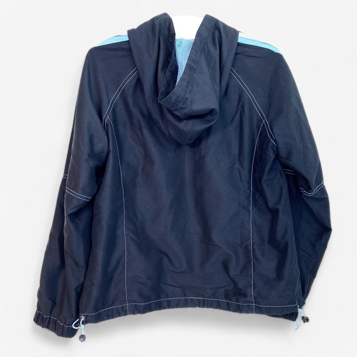 Green Tea Womens Hooded Lined Full-Zip Jacket | Size M | Navy Blue with Light Blue Accents | VGC
