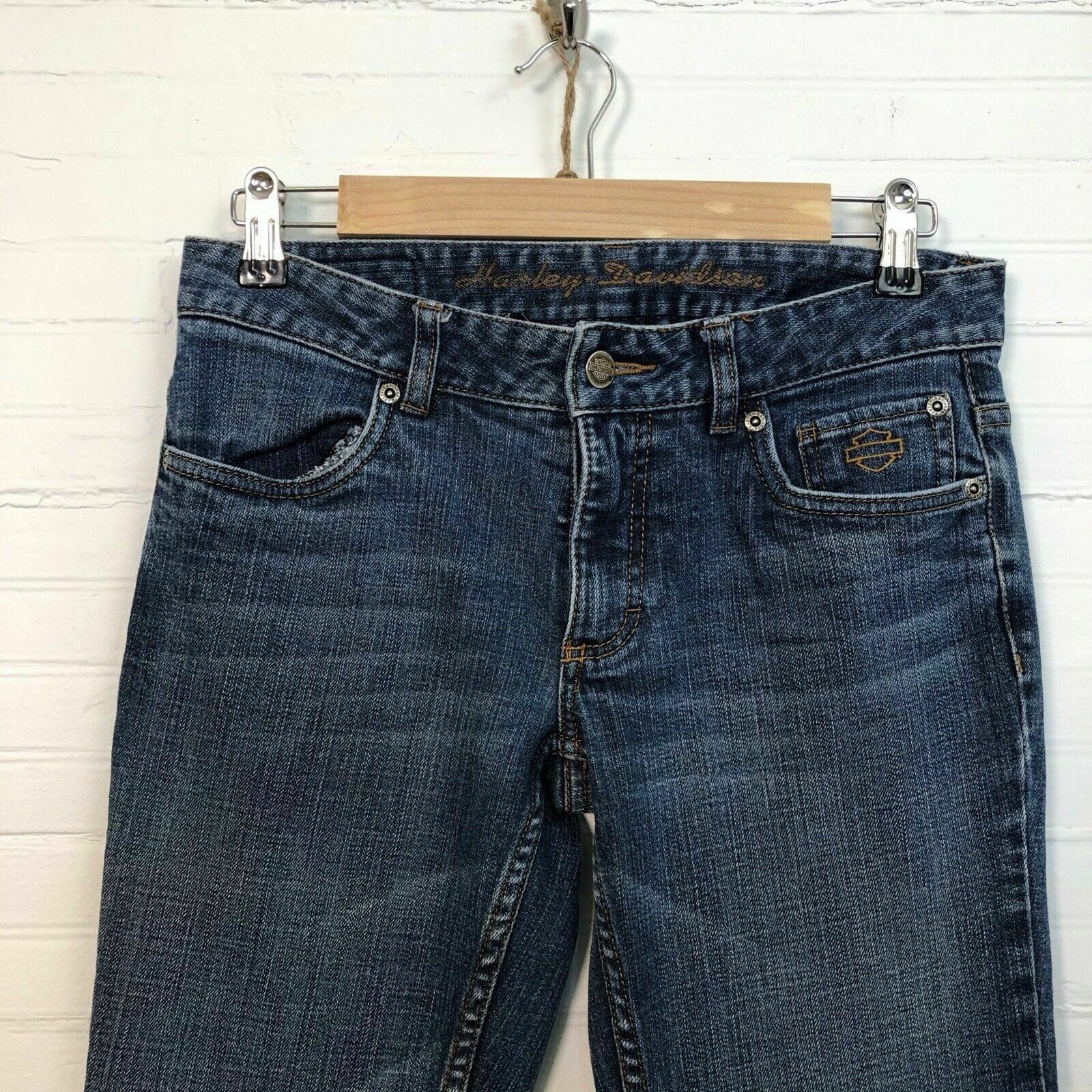 Harley-Davidson Women's Bootcut Jeans – Embroidered Logo for Casual Wear – Size 2 Blue Denim