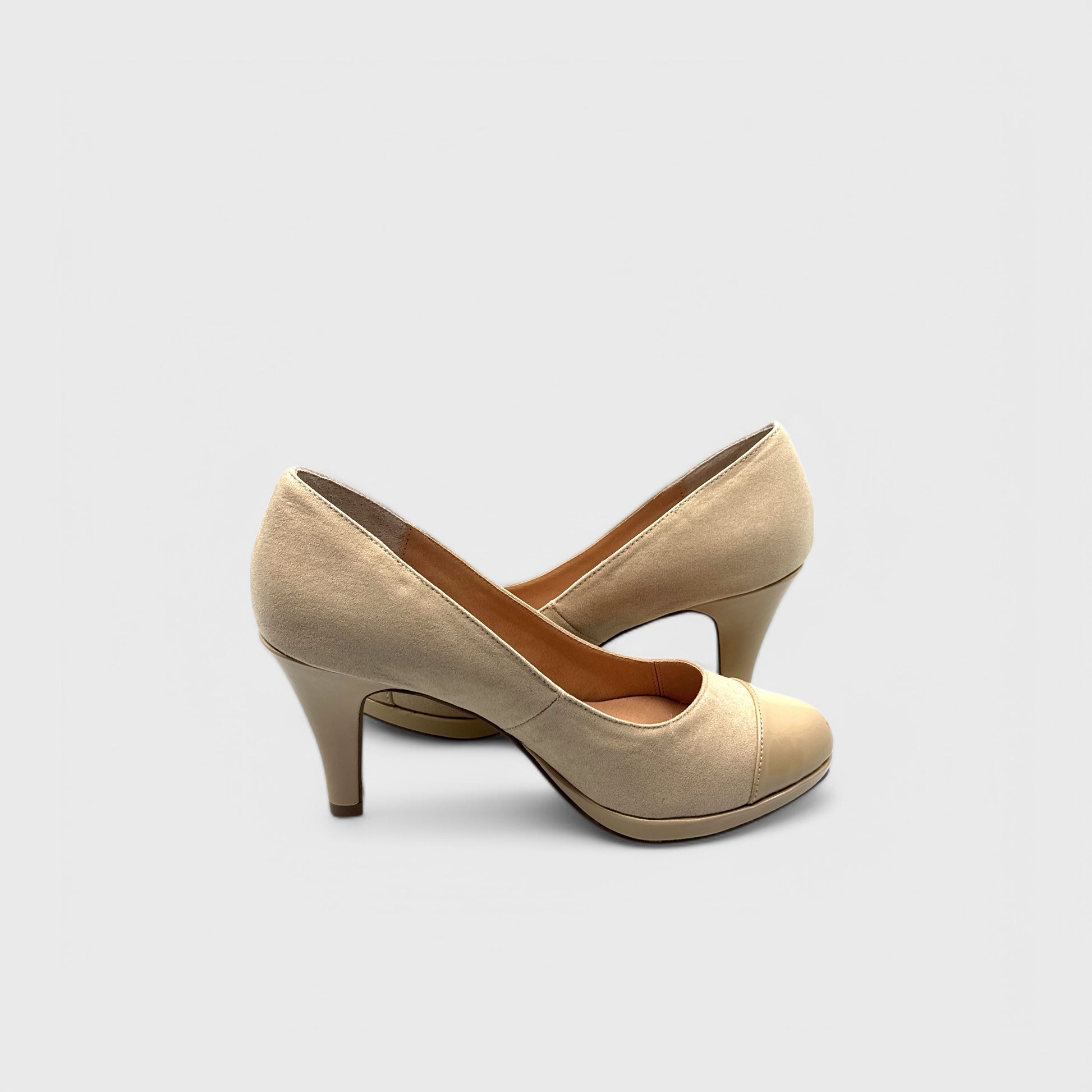 - Faux Suede Finish: Sand-toned upper adds softness and modern elegance