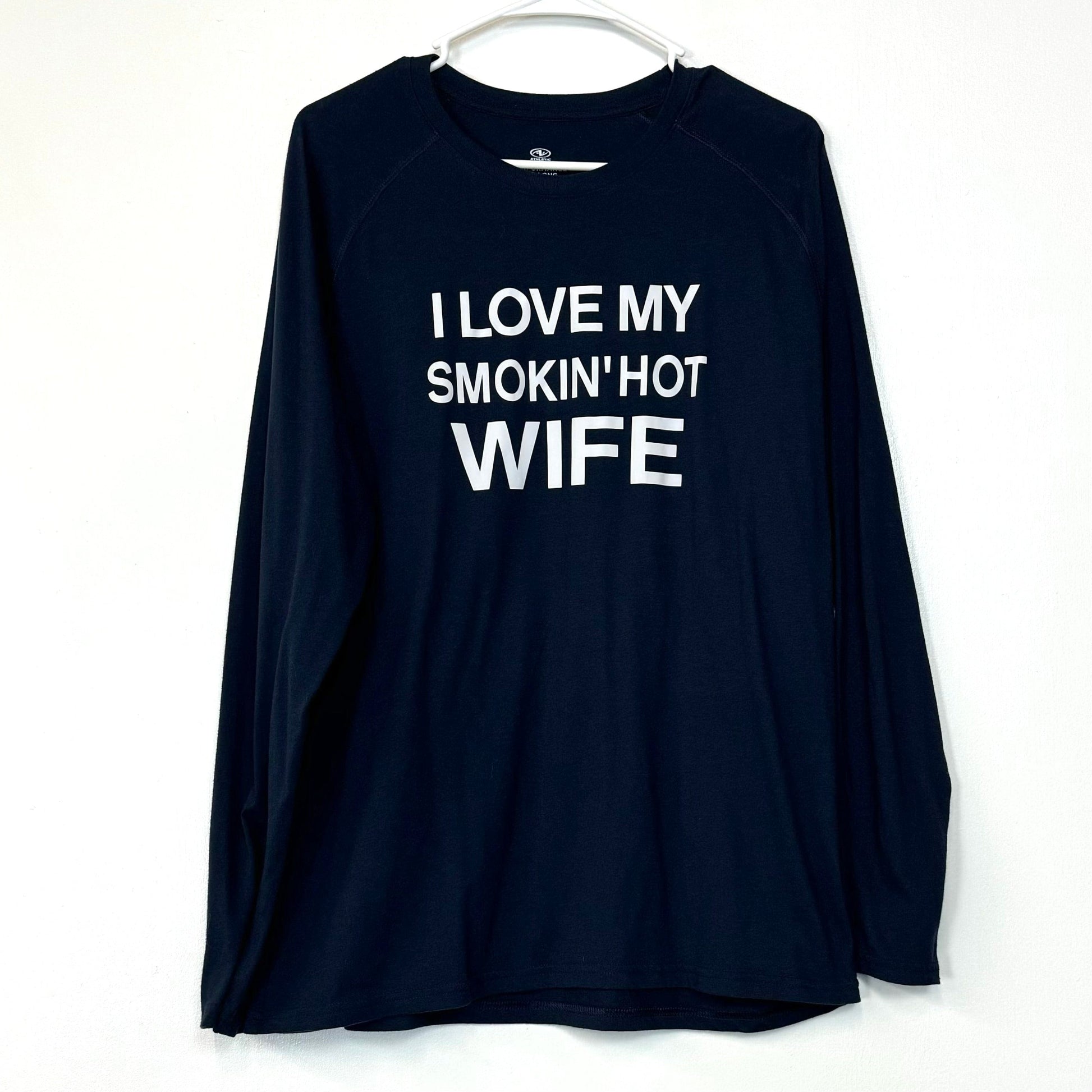 ‘I Love My Smoking Hot Wife’ | Mens L/s Loose Fit T-Shirt | Color: Blue | Size: L