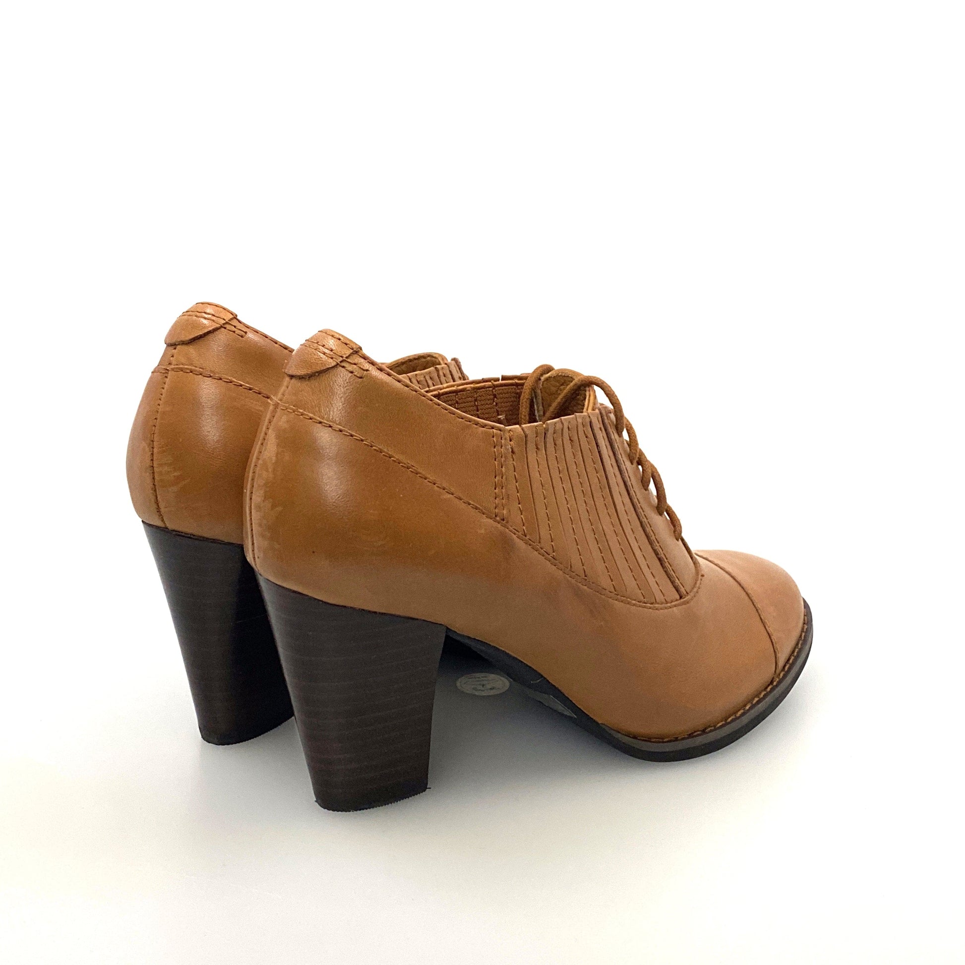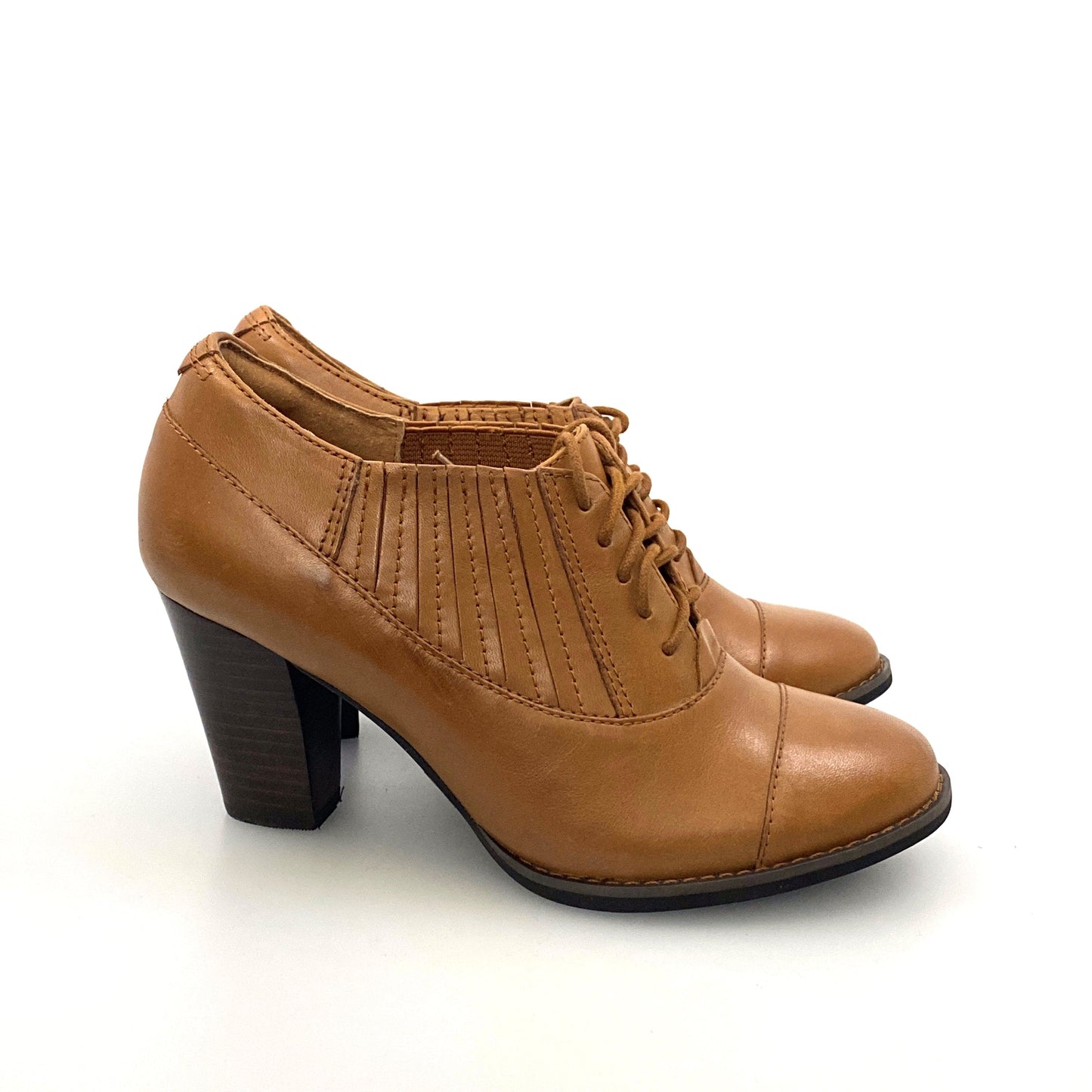 Indigo by Clarks Womens “Heather Merlin” Size 6M Beige Brown Leather Ankle Booties Lace Up