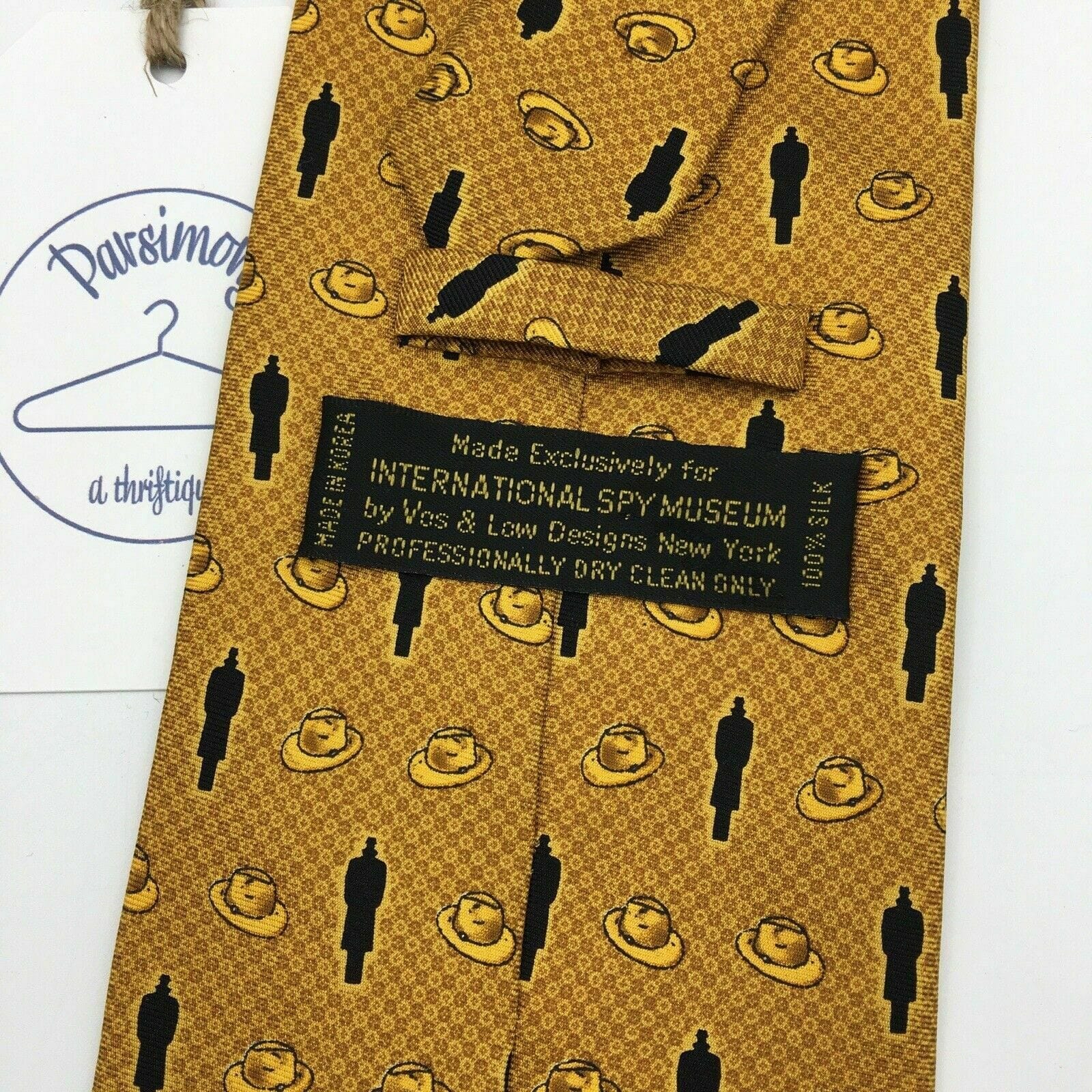 INTERNATIONAL SPY MUSEUM Mens Gold 59” 100% Silk Tie With Silhouette Vos & Low NY