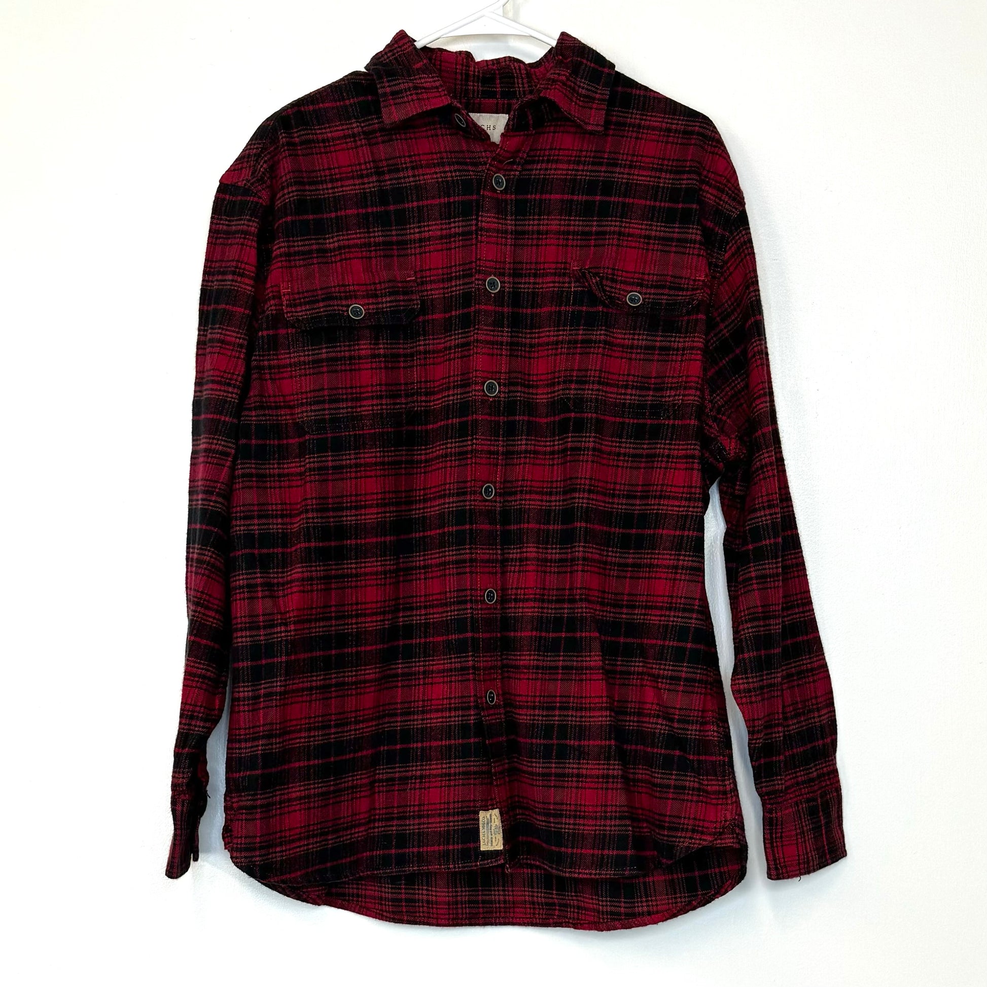 This Jachs Men's Plaid Flannel Shirt in Red/Black is perfect for the rugged, outdoorsy man. Made of high-quality flannel, it is durable and comfortable, making it ideal for all your outdoor adventures. Its classic plaid design adds a touch of style to this functional shirt. Size L. Excellent used condition.