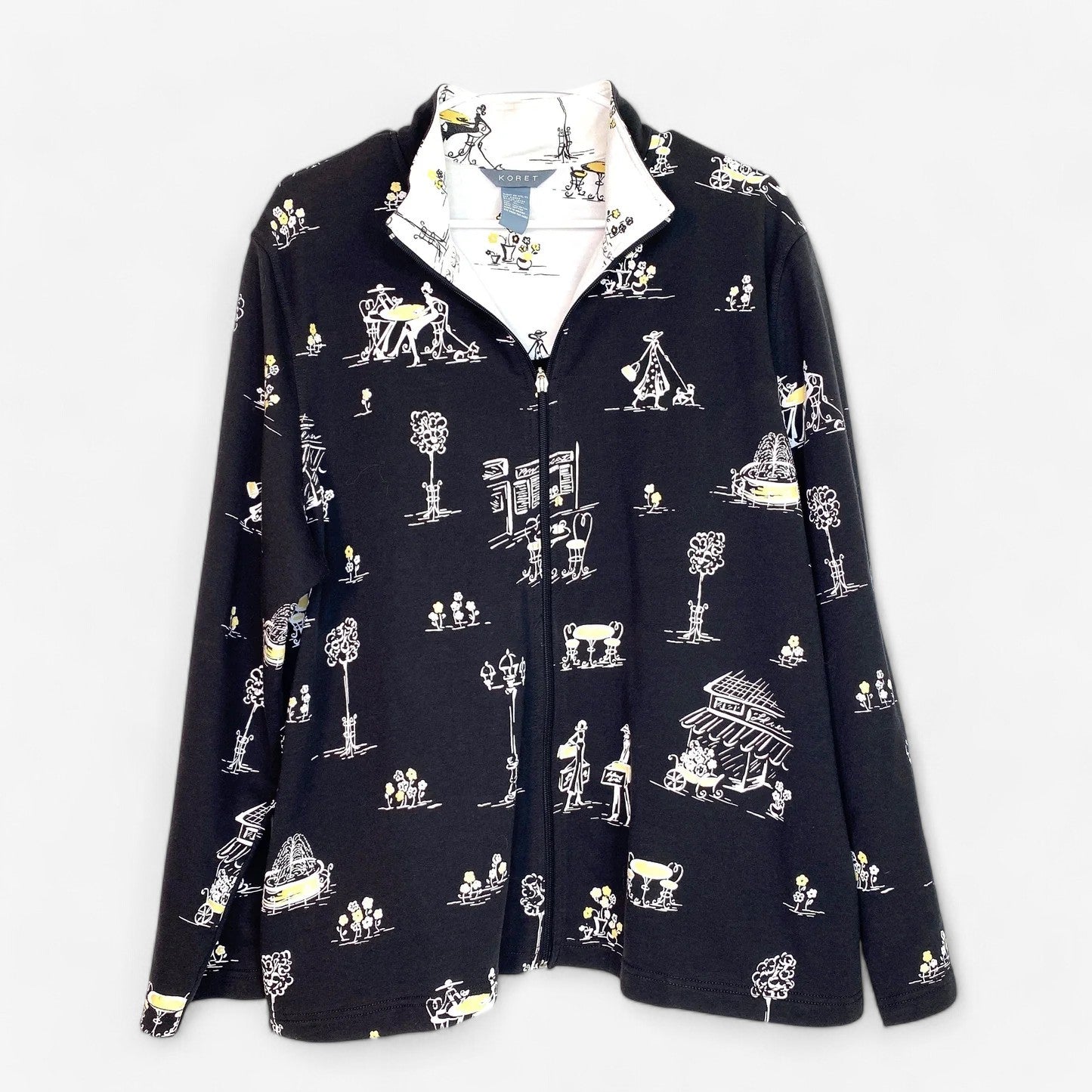 Koret Womens Size XL Black Sweatshirt Full Zip Lined French Themed Jacket