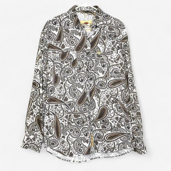 Larry Mahan Men's L Brown & White Floral Western Snap-Up Shirt