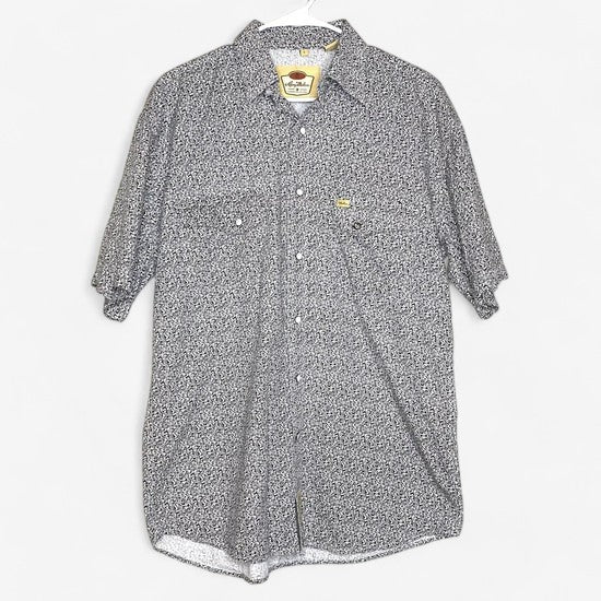 Step into classic Western elegance with this Larry Mahan Men's Large Black & White Paisley Snap-Up Dress Shirt. Designed for both style and comfort, this shirt is a versatile addition to any wardrobe.