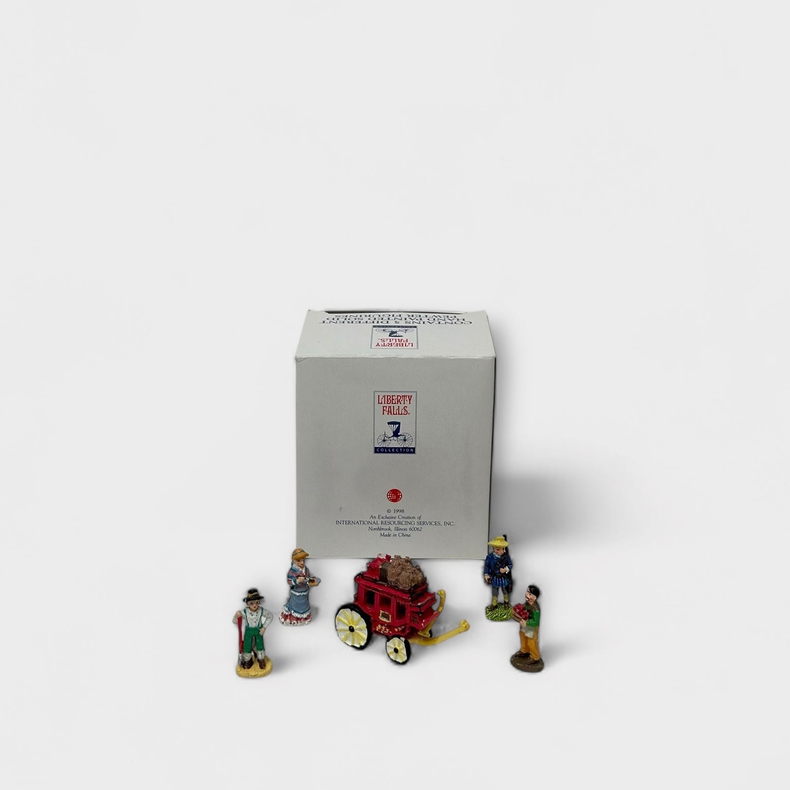 - Complete Set: Includes a beautifully crafted stagecoach centerpiece and four accompanying figurines, all in mint condition.