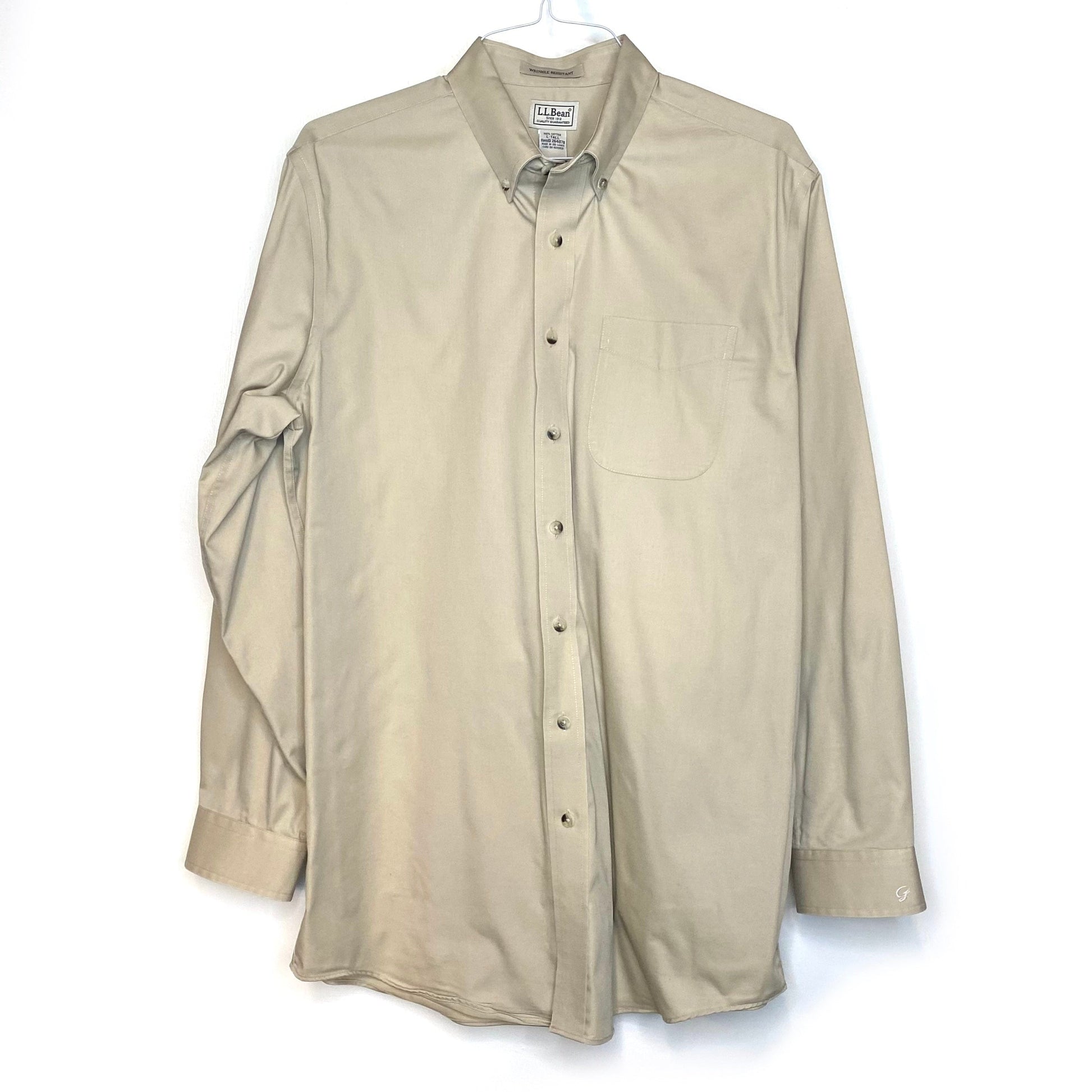 LL Bean Men's Beige Button-Down Dress Shirt - Size L Tall - Long Sleeve