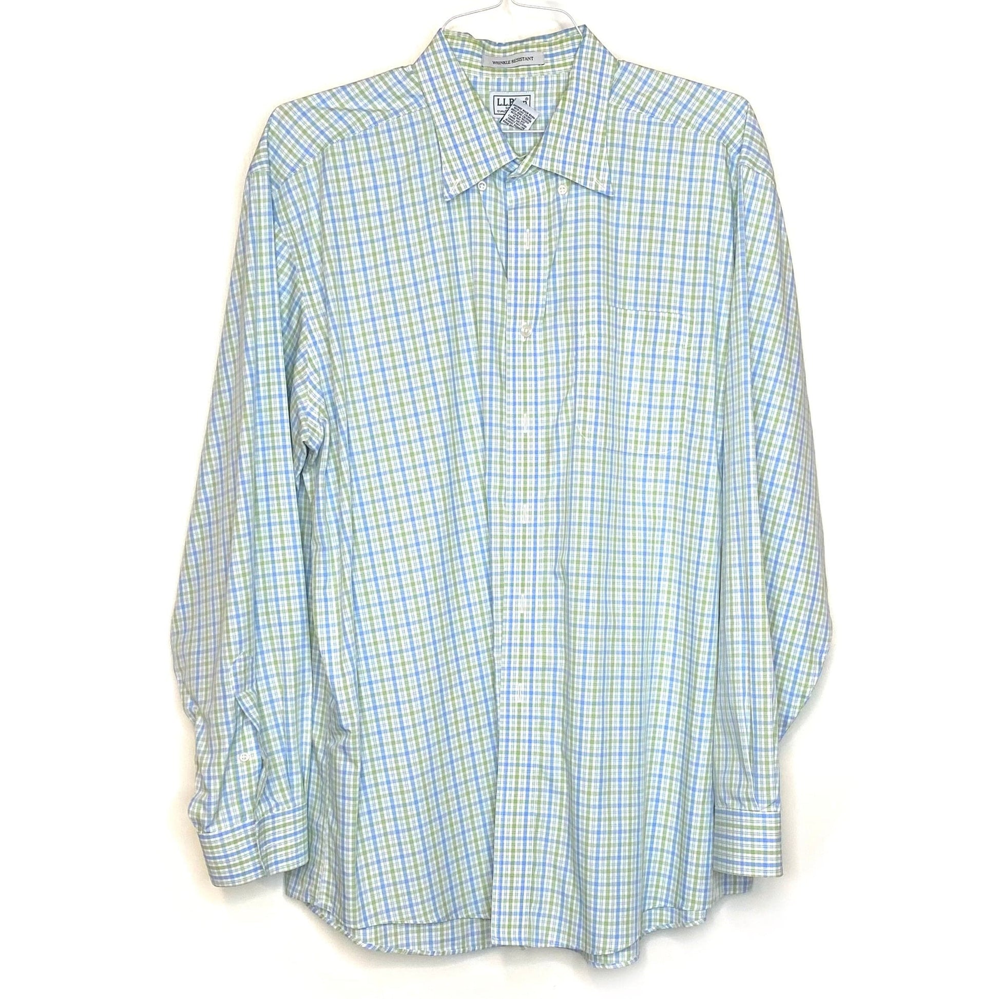 LL Bean Men's White, Green, and Blue Plaid Button-Up Shirt - Size XL - Long Sleeve