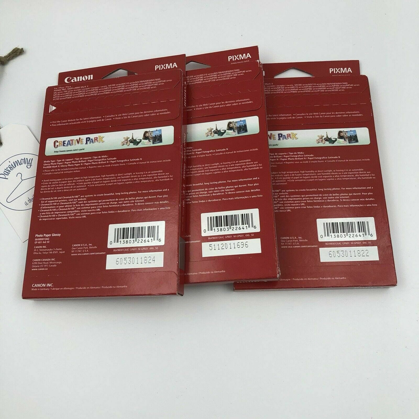 Lot of 3 - Canon Pixma 4" x 6" Photo Paper Glossy GP-601 Packs / 50 Sheets ea
