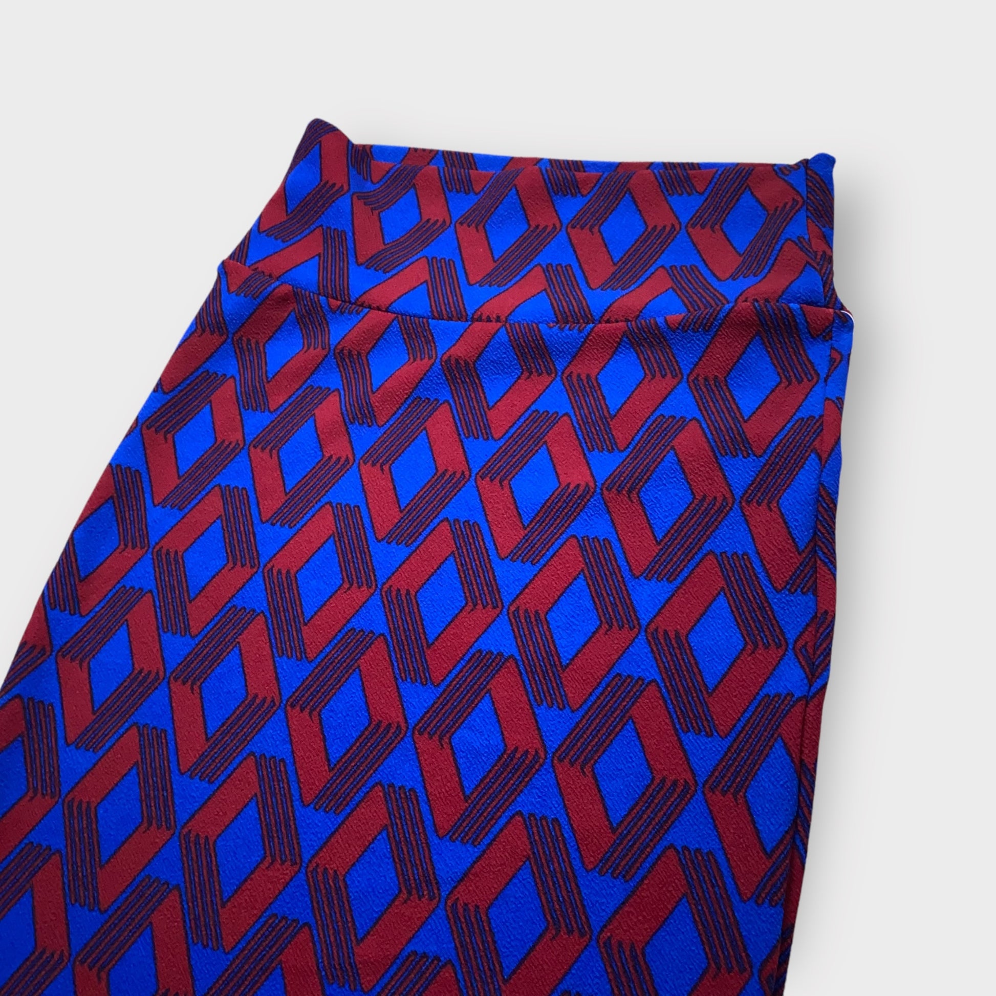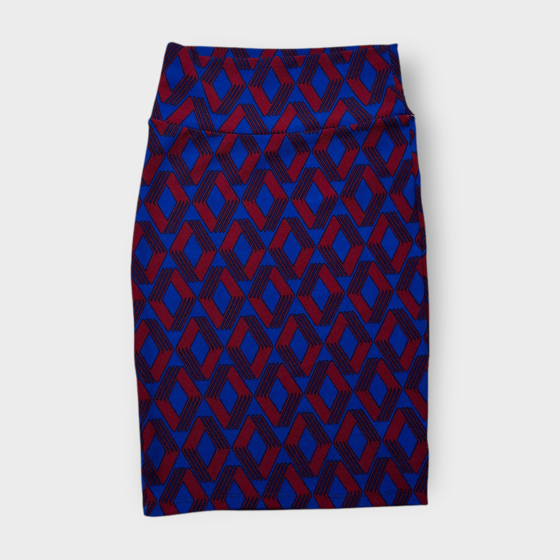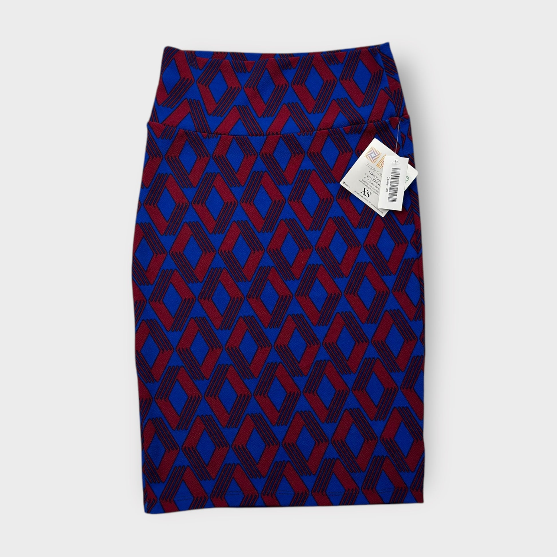 LuLaRoe Cassie Pencil Skirt - Blue/Red Geometric Diamonds - Women's XS (0-2) - NWT