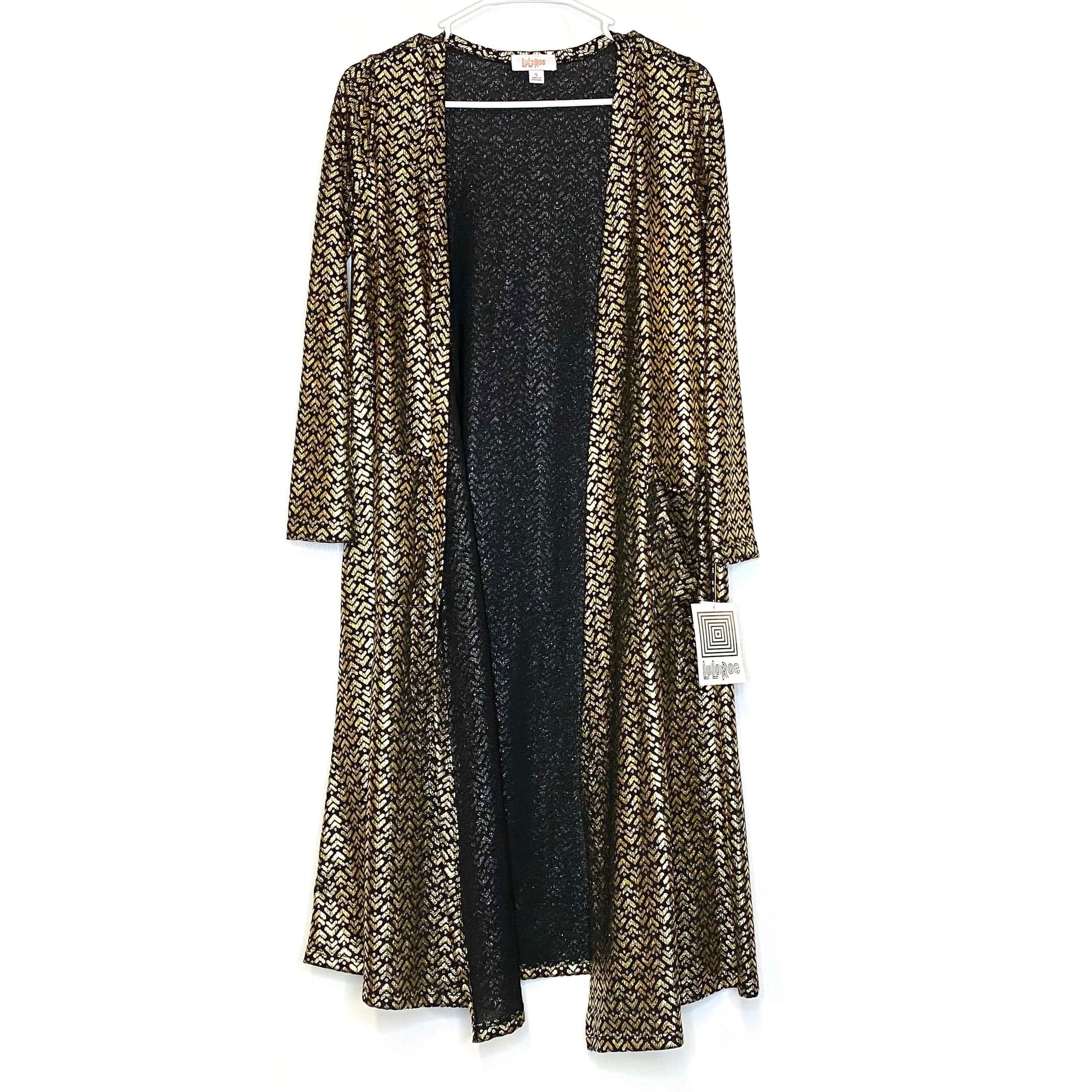 LulaRoe ELEGANT Womens Size S Black/Gold Chevron ‘Sarah’ Cardigan Sweater NWT