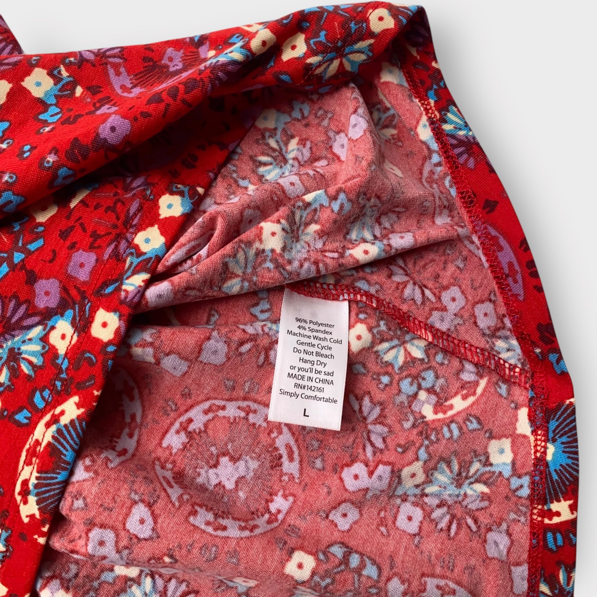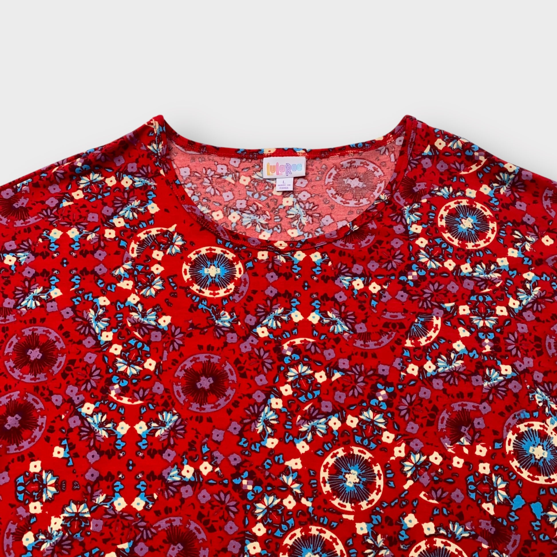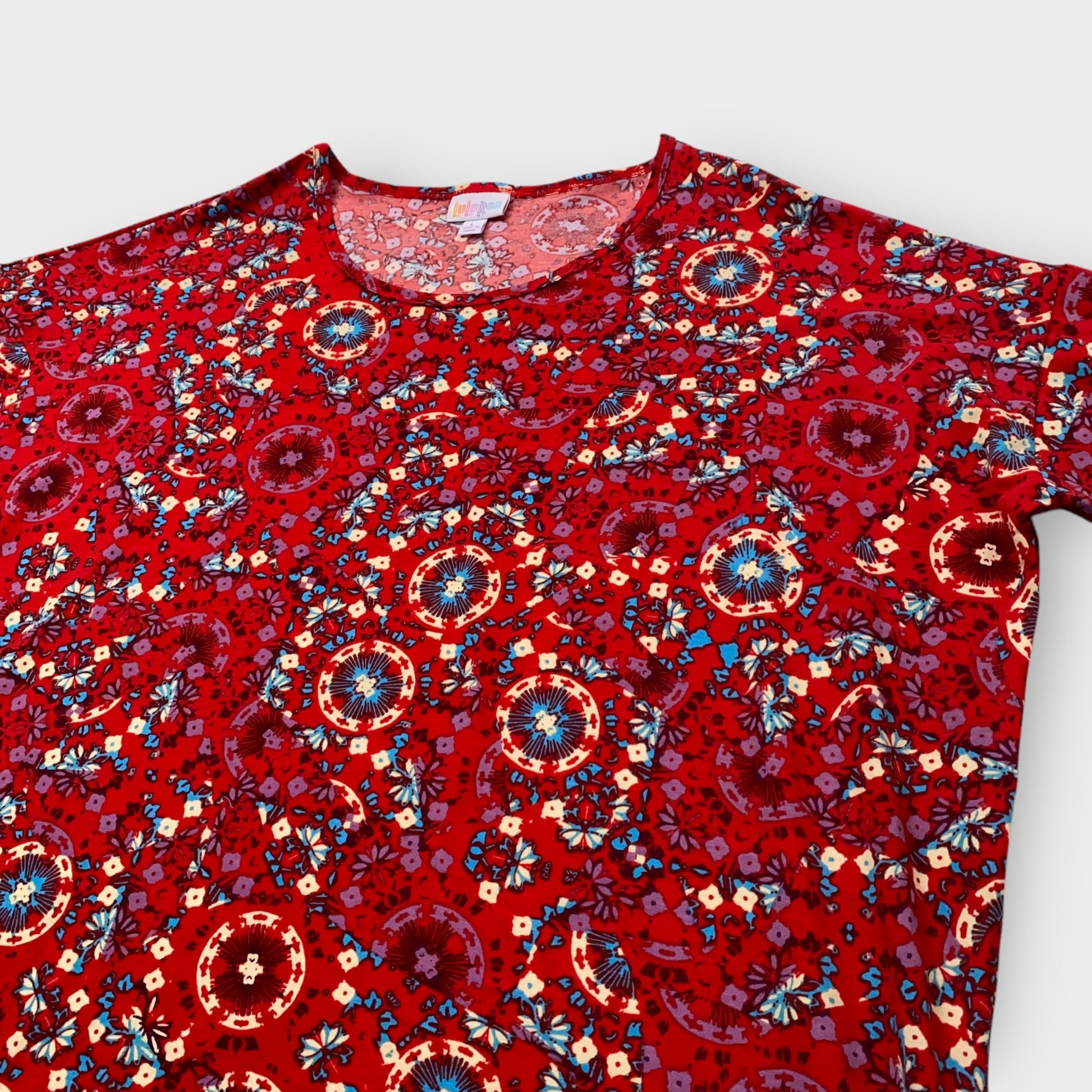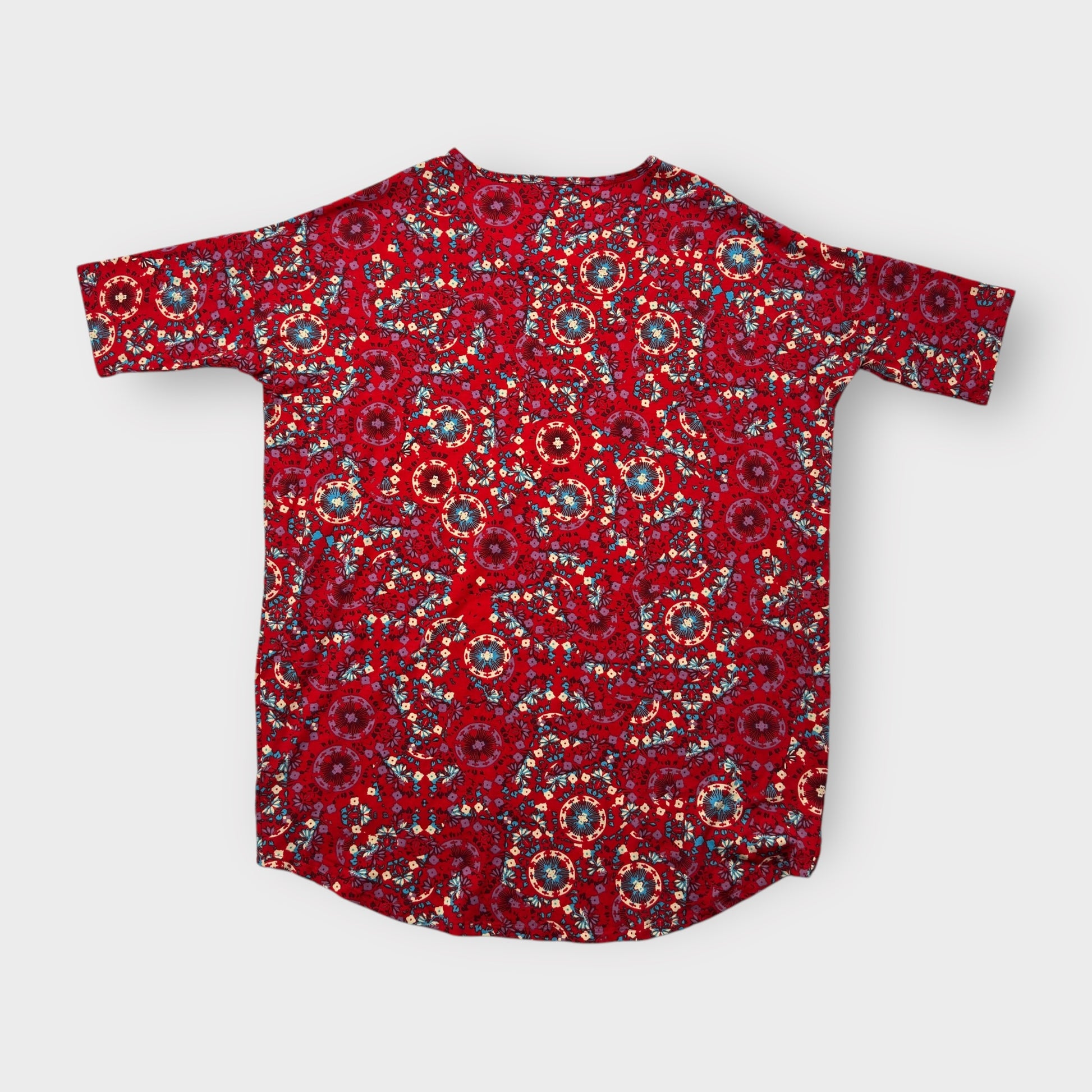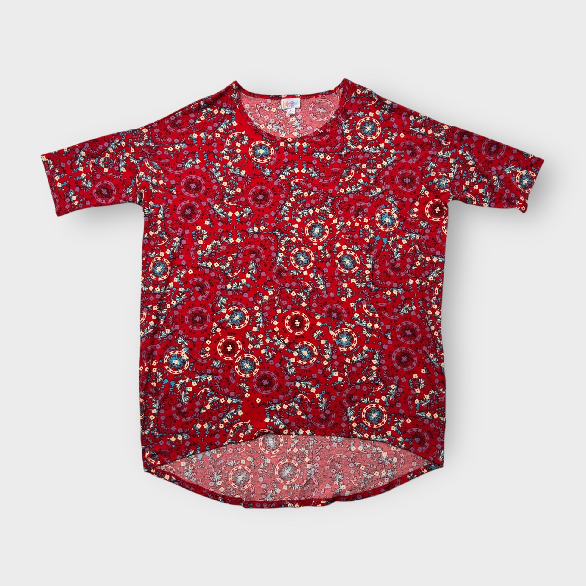 LuLaRoe Irma S/S High-Low Tunic - Red Floral Ornate Print - Women's L (14-16) - NWT