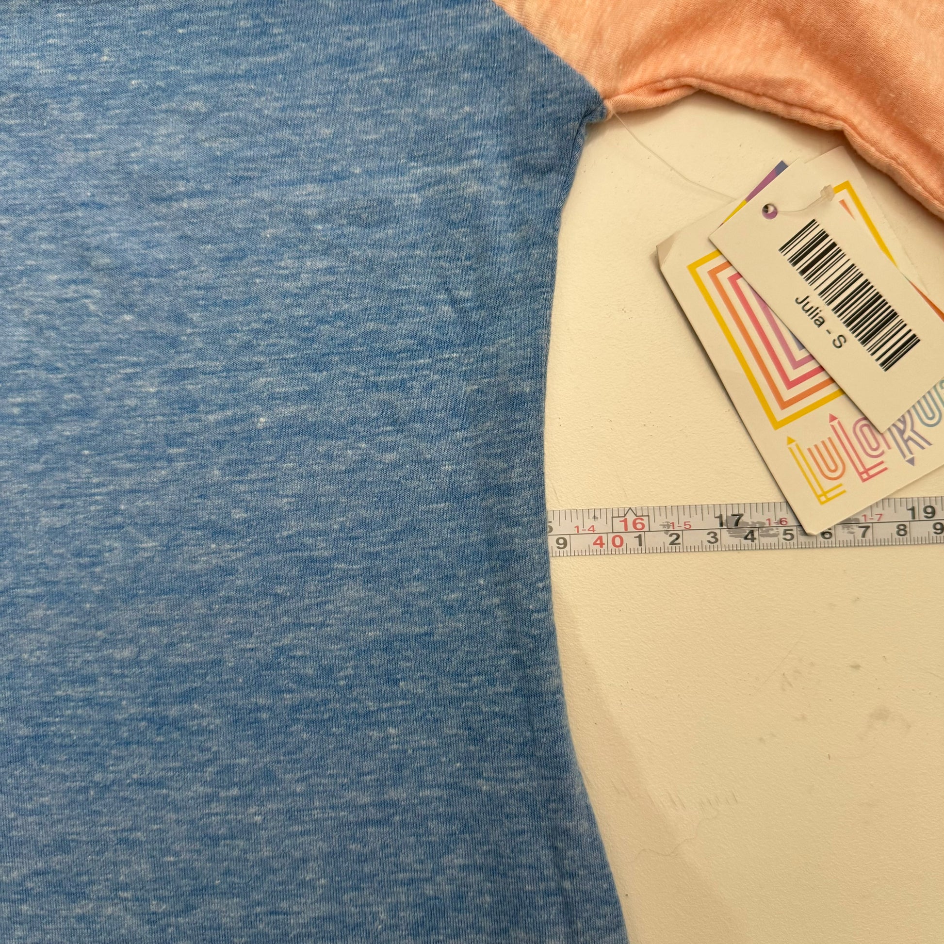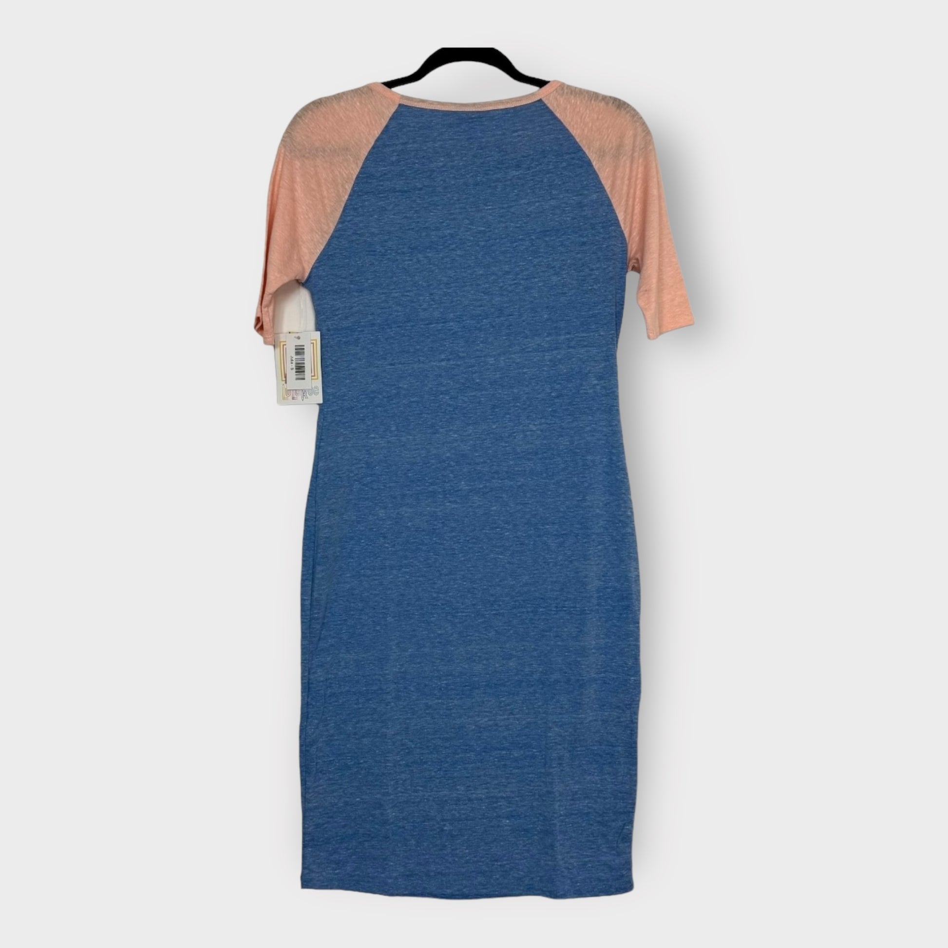 LuLaRoe Julia Bodycon Dress | S (4-6) | Blue/Peach | Colorblock/Raglan | NWT
