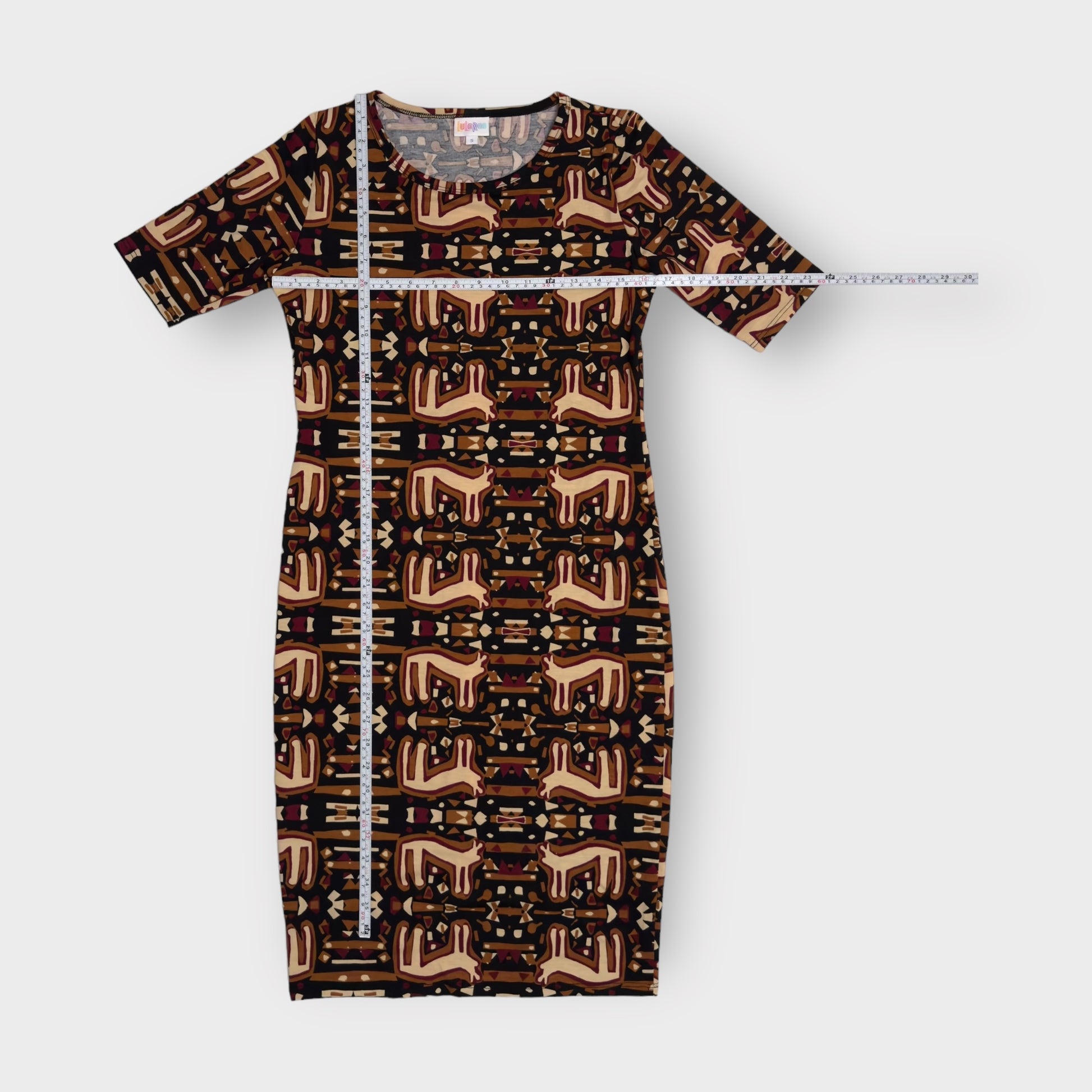 Step into a world of elegance and confidence with the stunning LuLaRoe Julia Bodycon Dress. This exquisite dress, adorned in a captivating brown and black animal print, is crafted from a luxurious blend of polyester and spandex that hugs your curves in all the right places. Feel the soft fabric against your skin as you embrace the perfect combination of style and comfort, making it an ideal choice for date nights or any special occasion.
