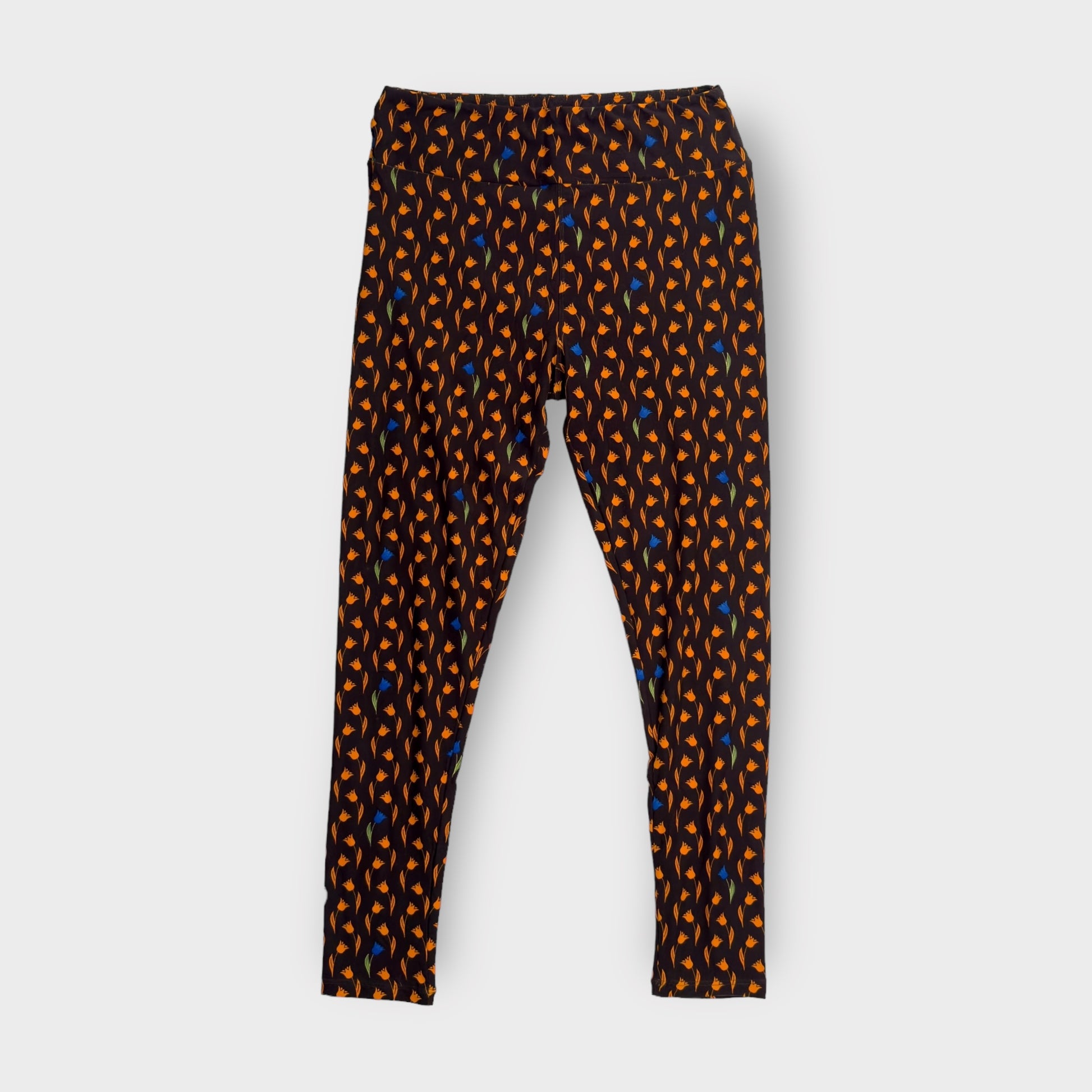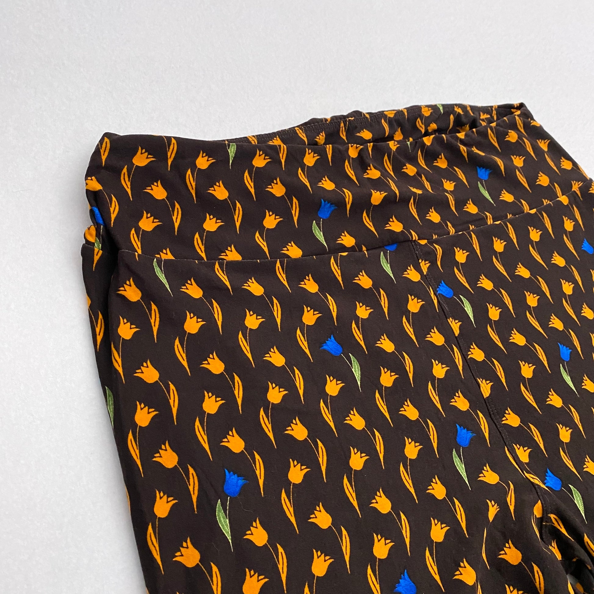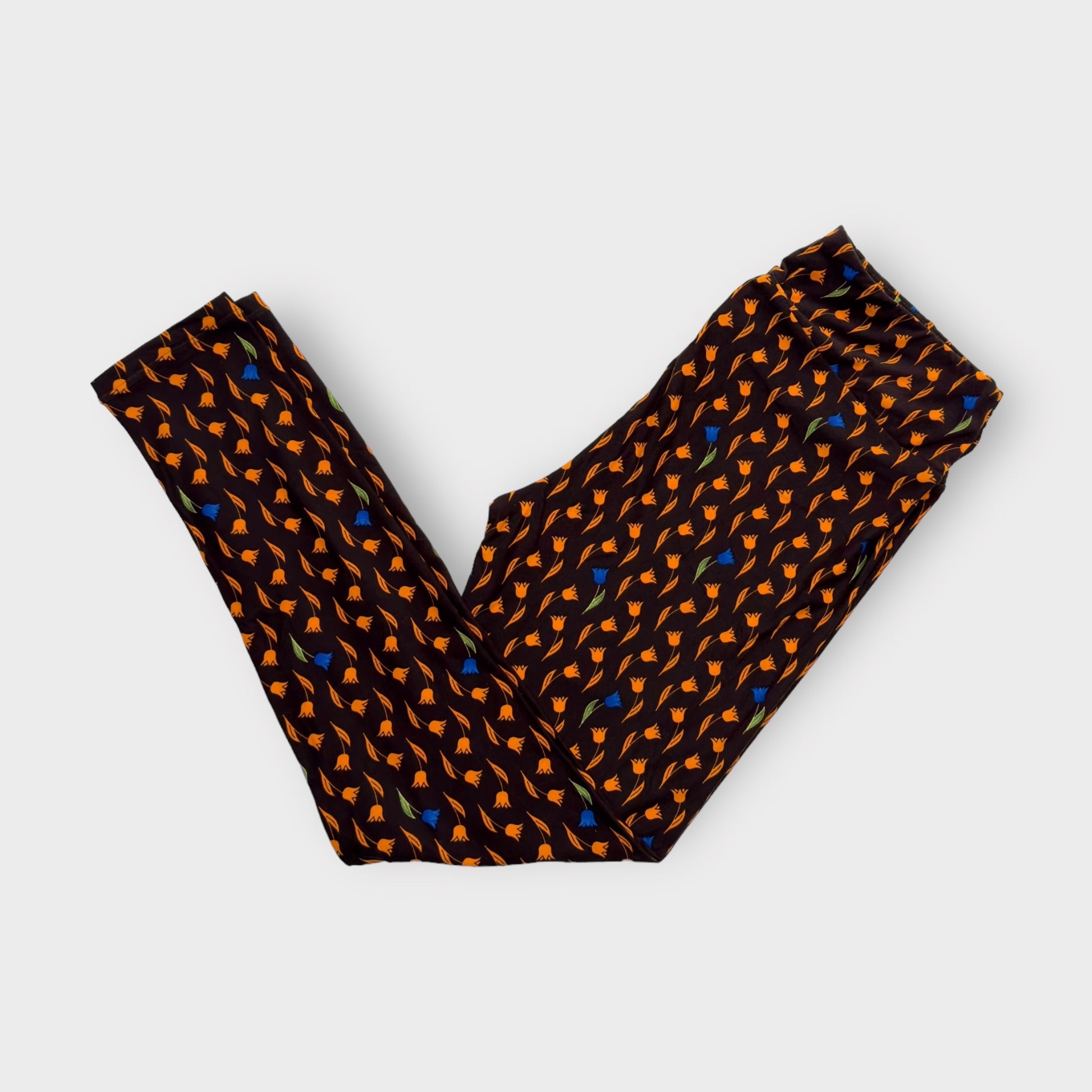 LuLaRoe Leggings | OS (2-10) | Brown w/Yellow Retro Floral Pattern | Buttery Soft | New