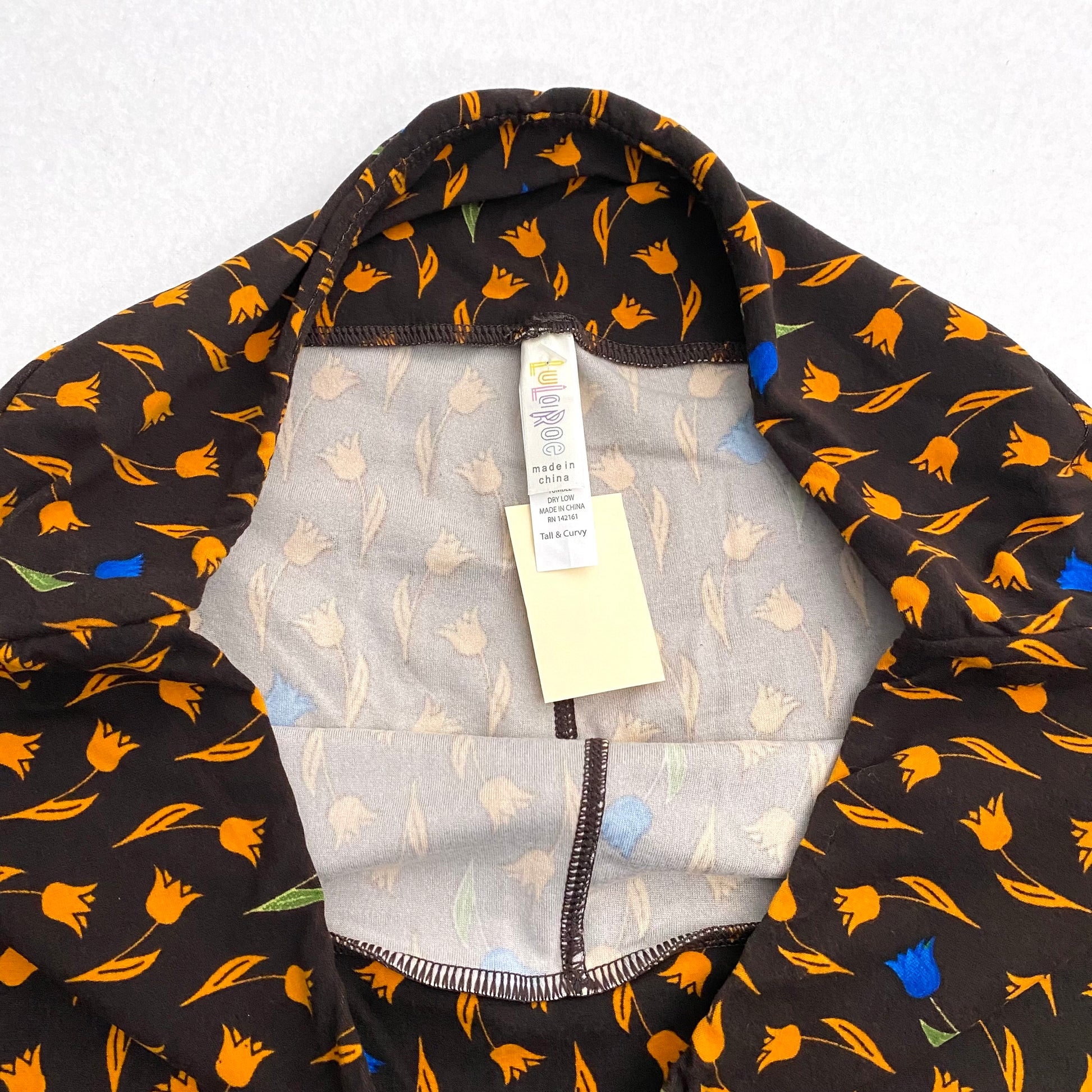 Step into a world of comfort and style with our stunning LuLaRoe Leggings in a rich brown adorned with a vibrant yellow retro floral pattern. Crafted from a luxurious blend of polyester and spandex, these leggings offer a buttery soft feel that hugs your curves while providing the perfect amount of stretch. Whether you're lounging at home or out on the town, these footless leggings are designed to elevate your everyday wear with a touch of floral elegance.
