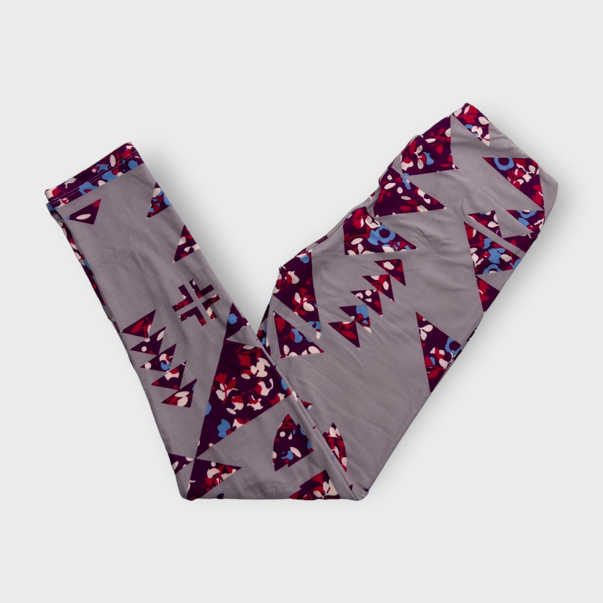 LuLaRoe Leggings | OS (2-10) | Gray/Purple Abstract Triangles | Buttery Soft | New