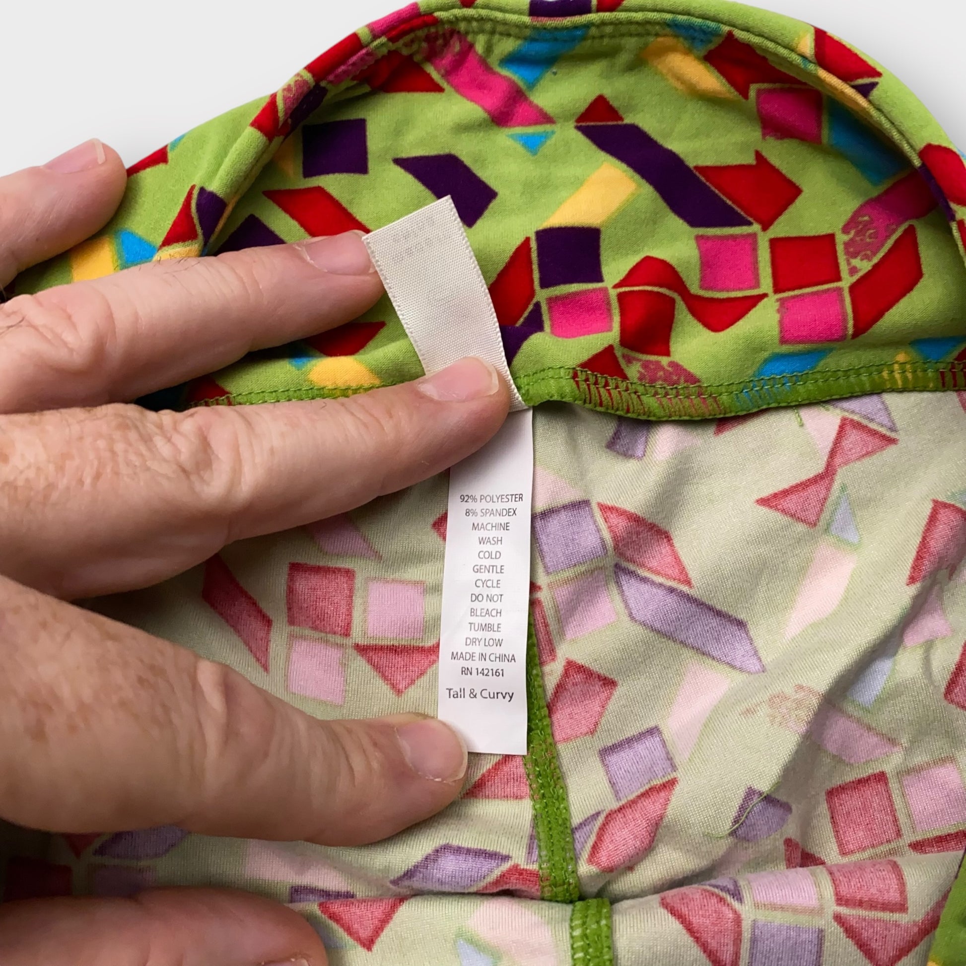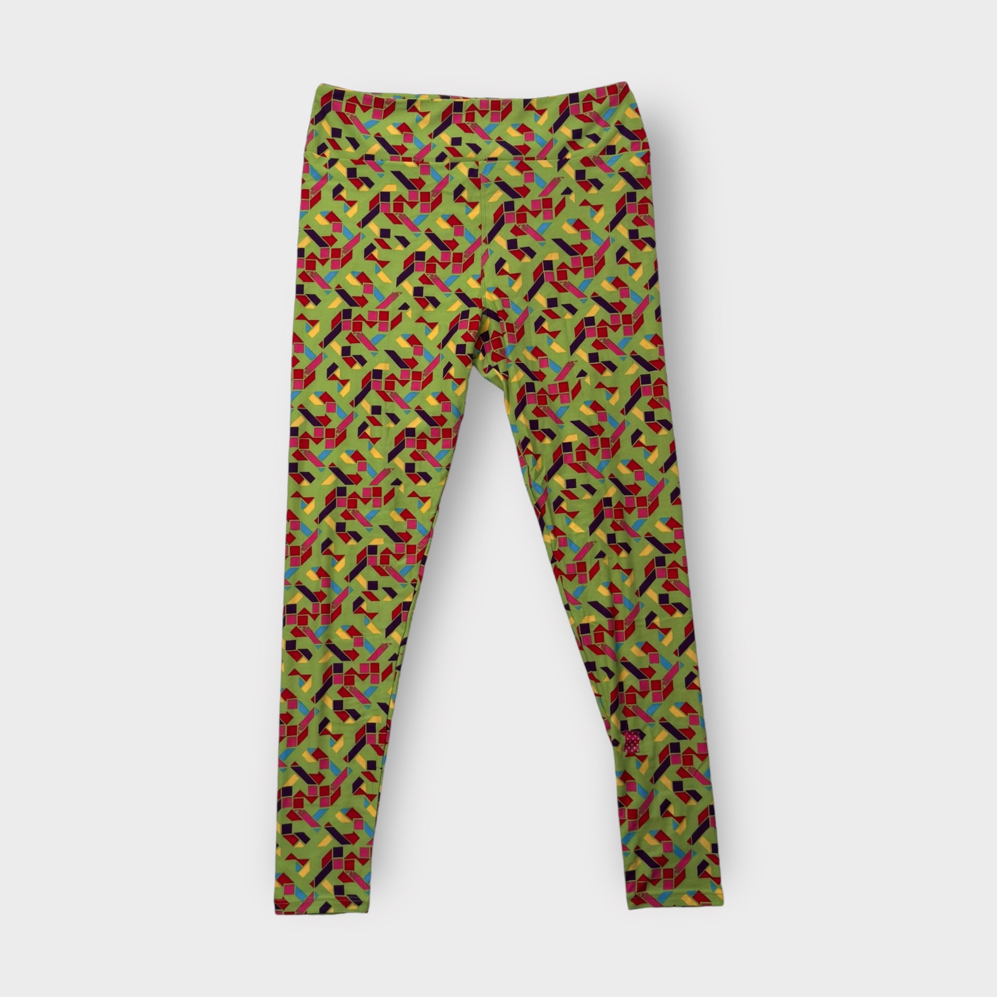 LuLaRoe Leggings | TC (12-18) | Green Geometric Print | Soft Stretchy | New