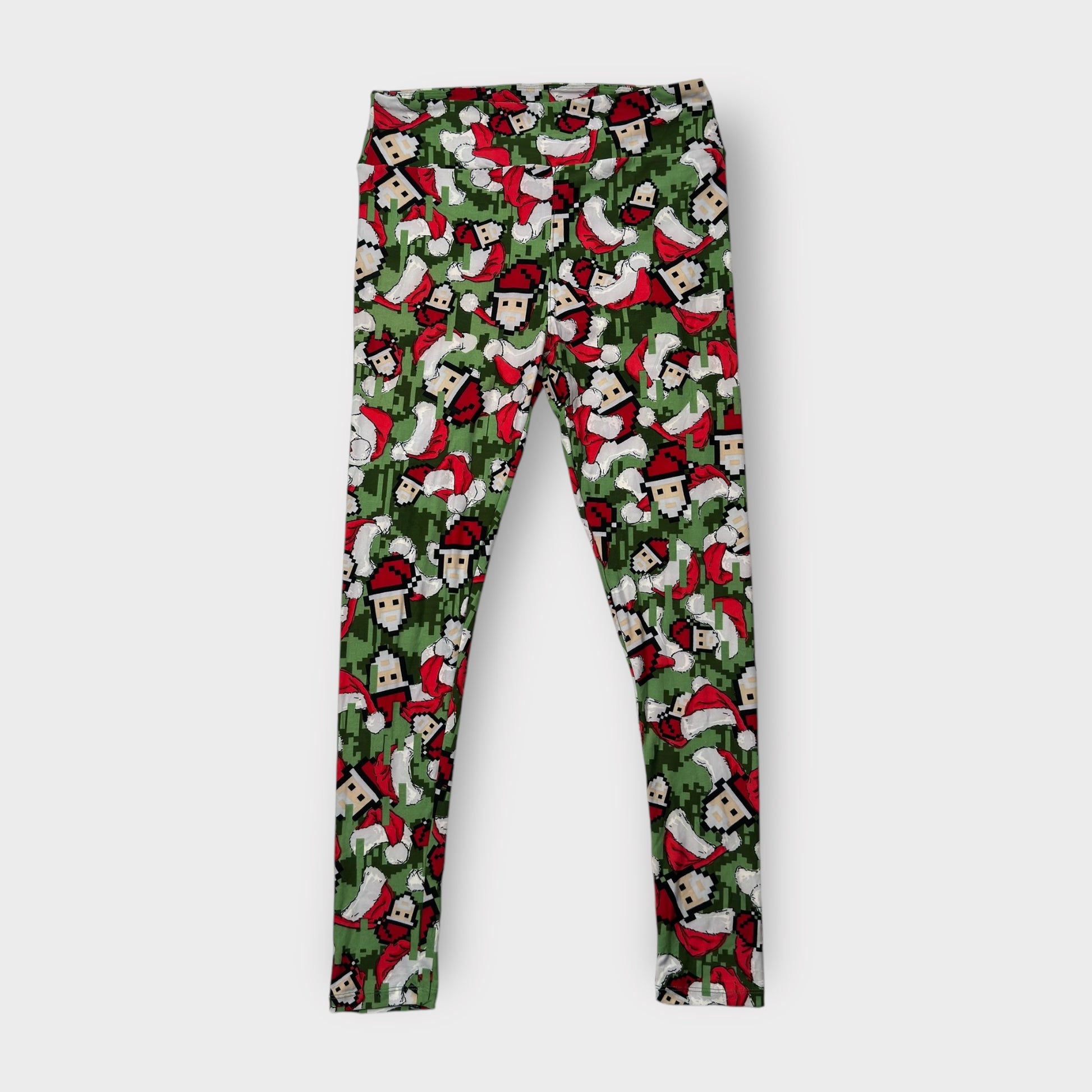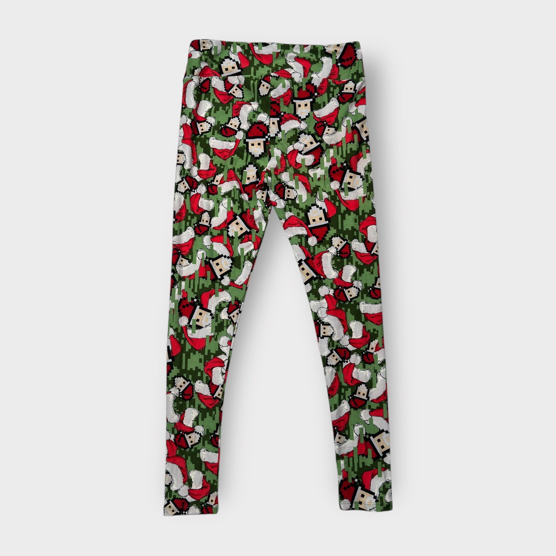 LuLaRoe Leggings - TC (12-18) - Green, Red & White Pixelated Santa Print