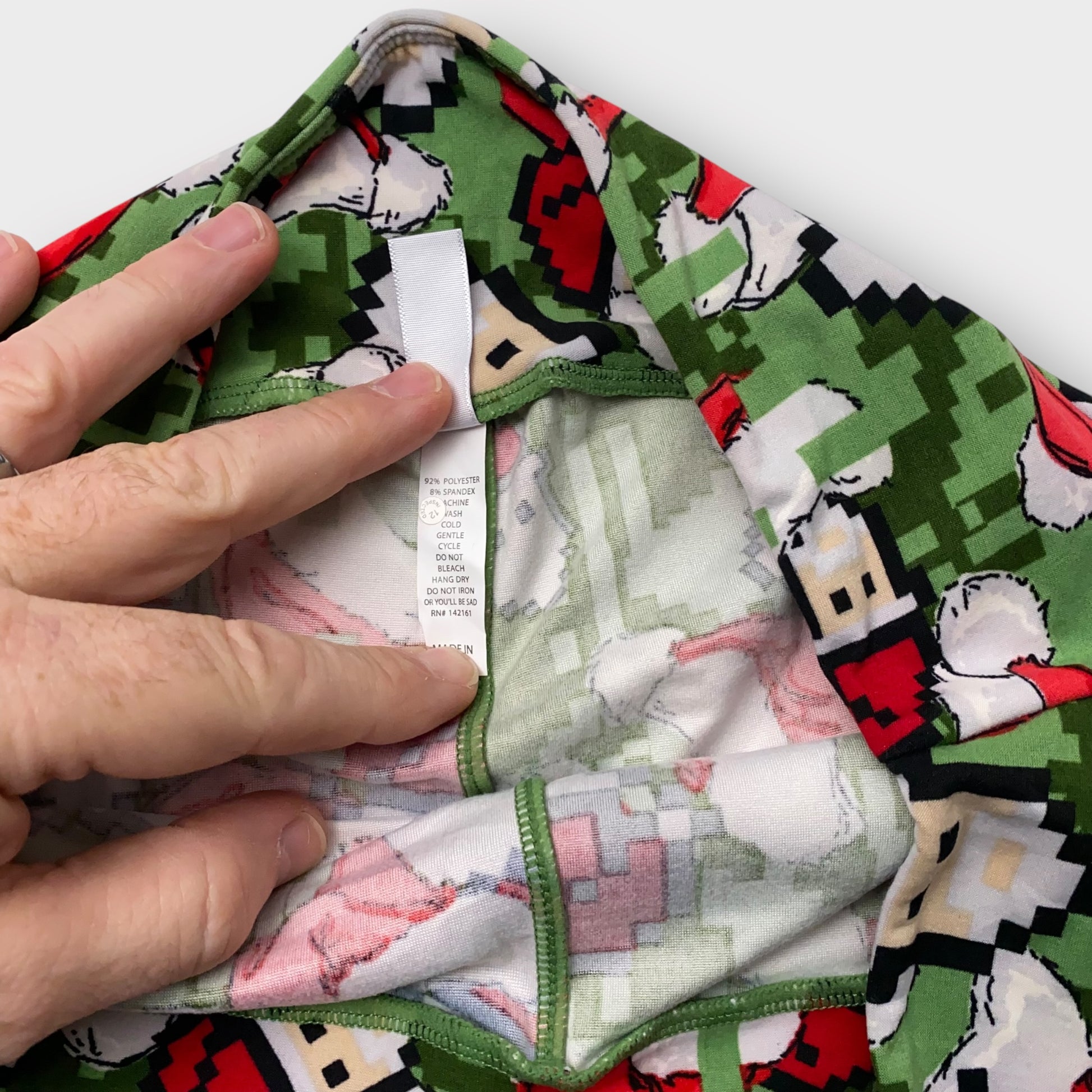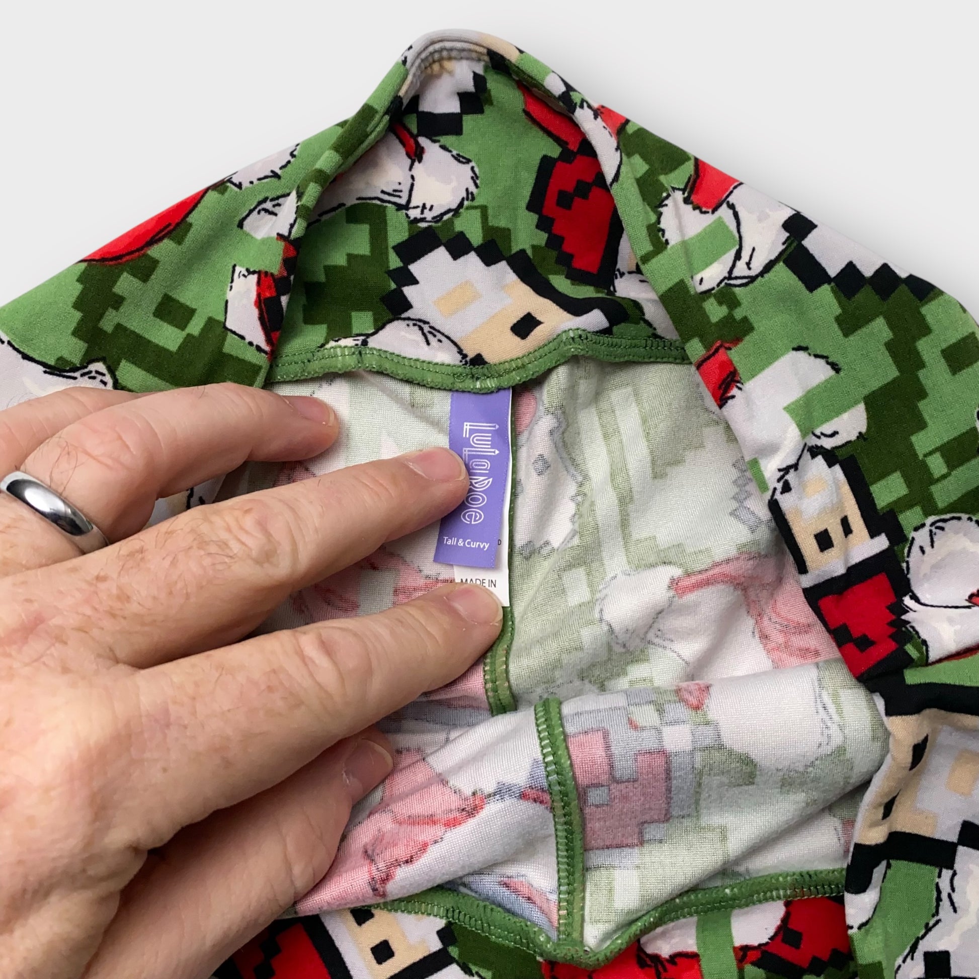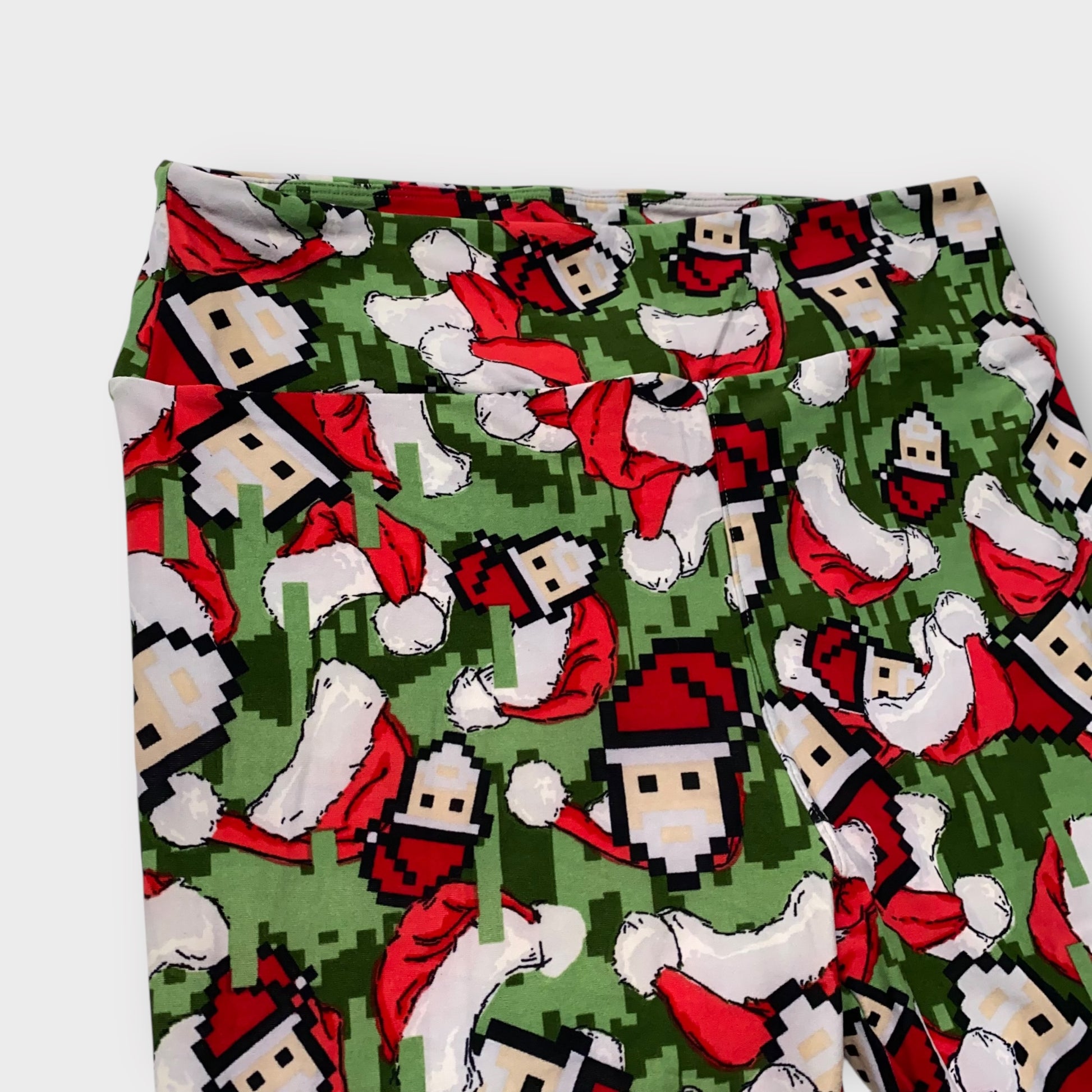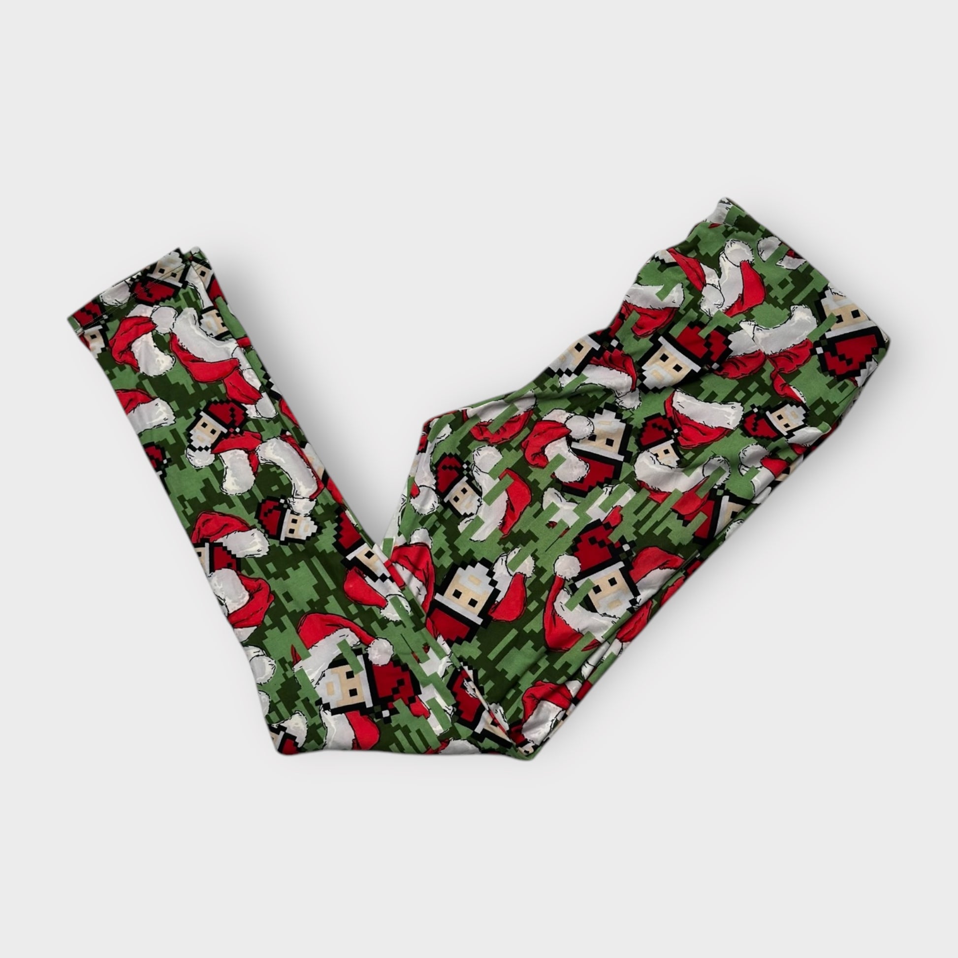 LuLaRoe Leggings TC (12-18) - Green, Red & White Pixelated Santa Print - Ultra Soft Stretch Fabric