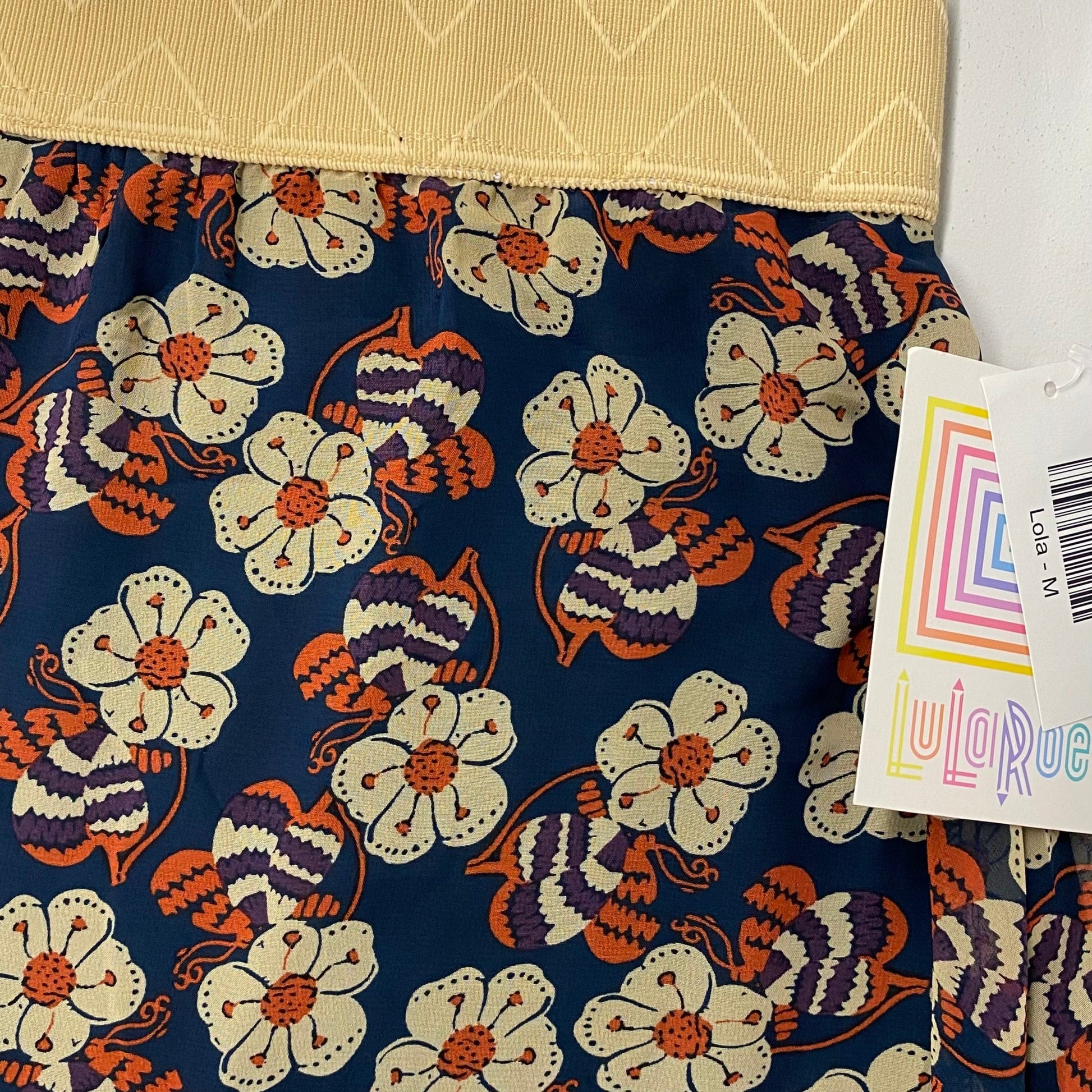 LuLaRoe Lined Lola Skirt | M | Buttermilk/Blue Floral | NWT