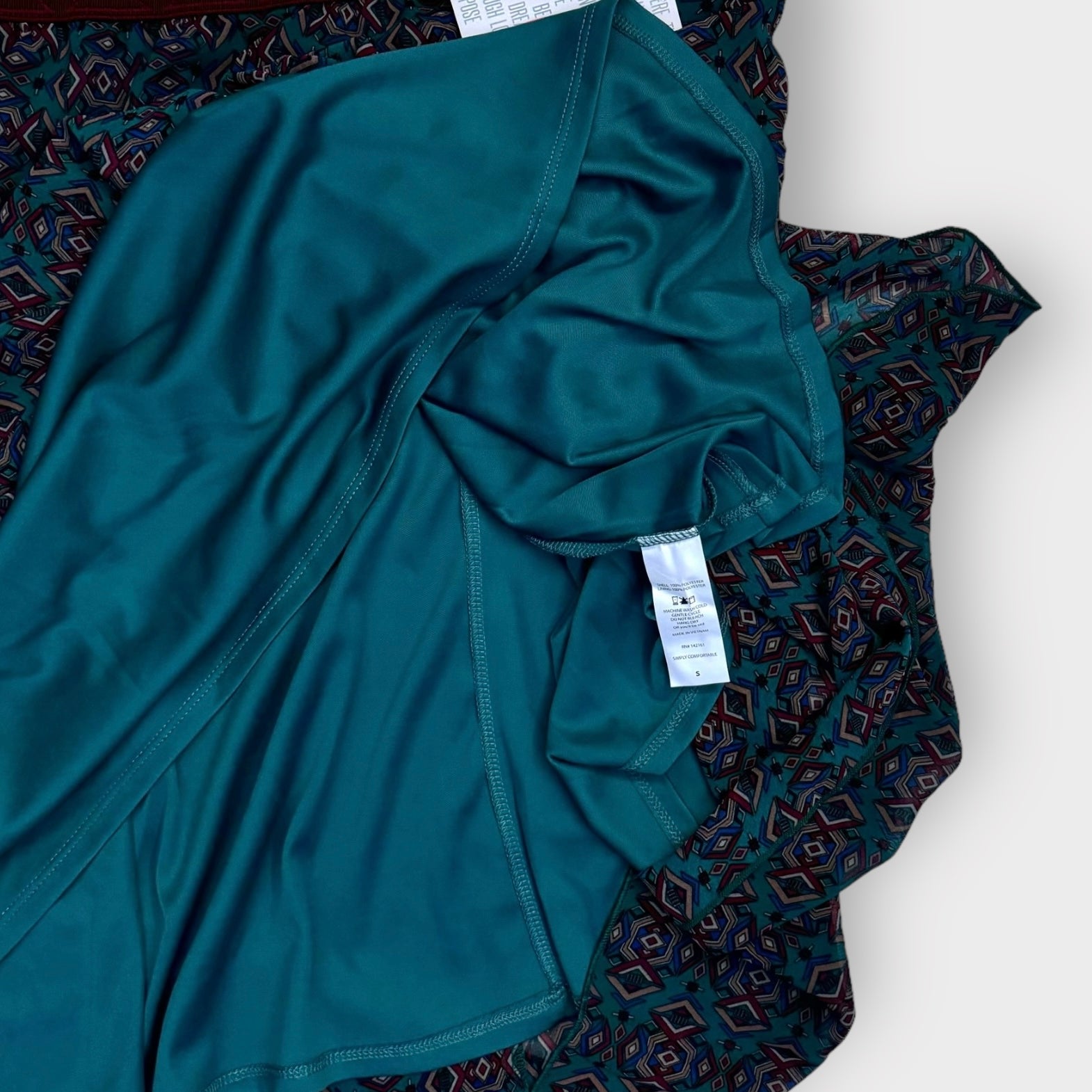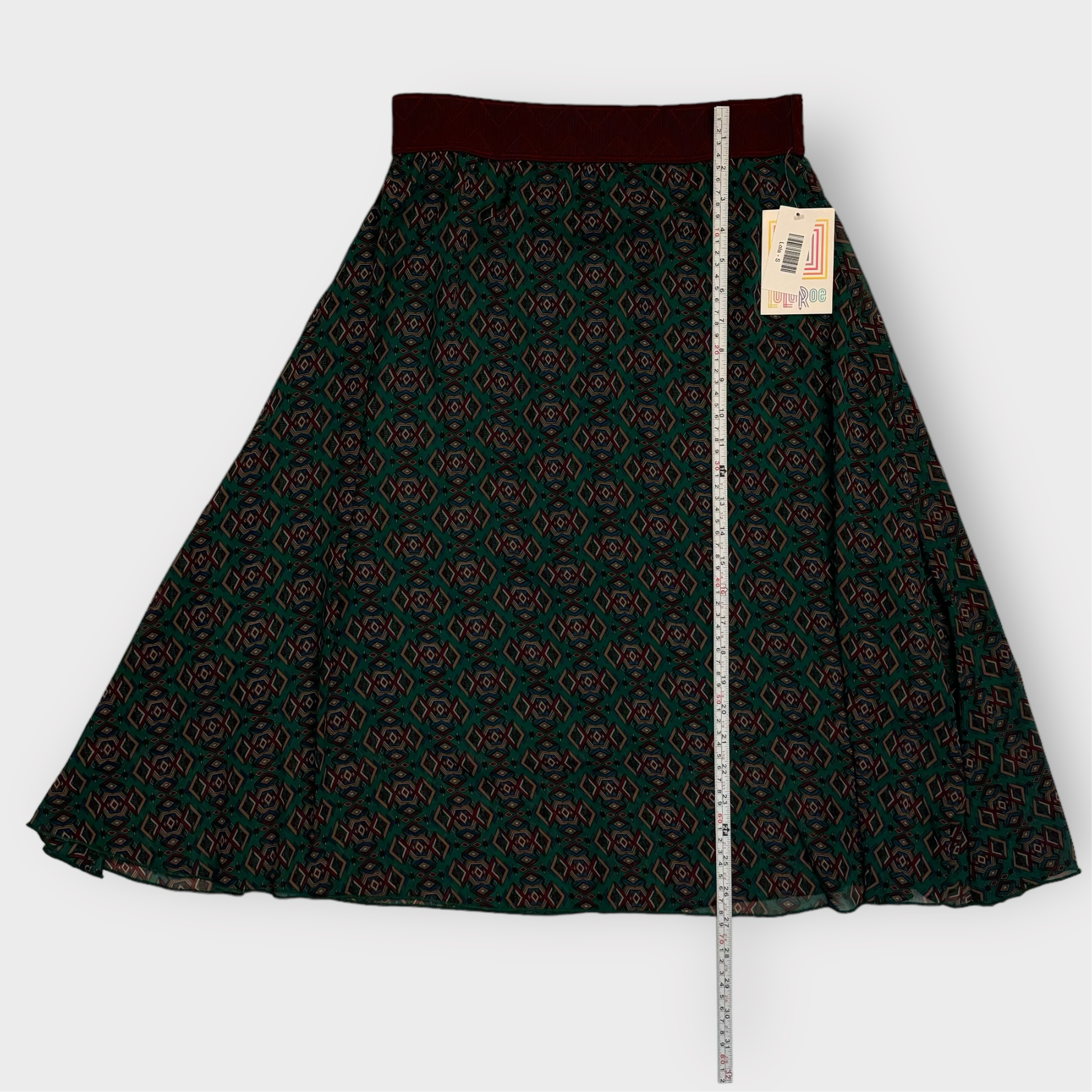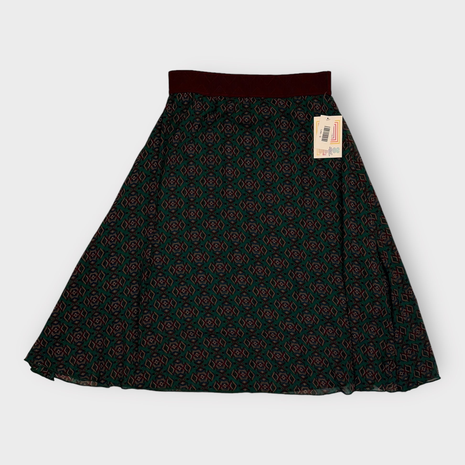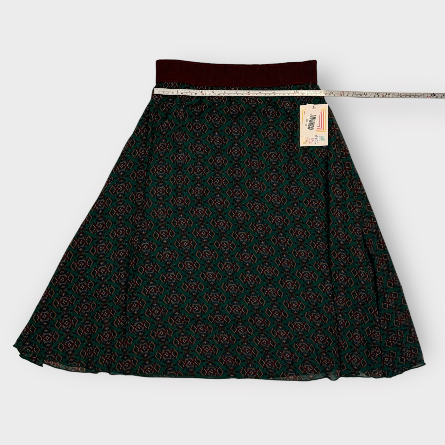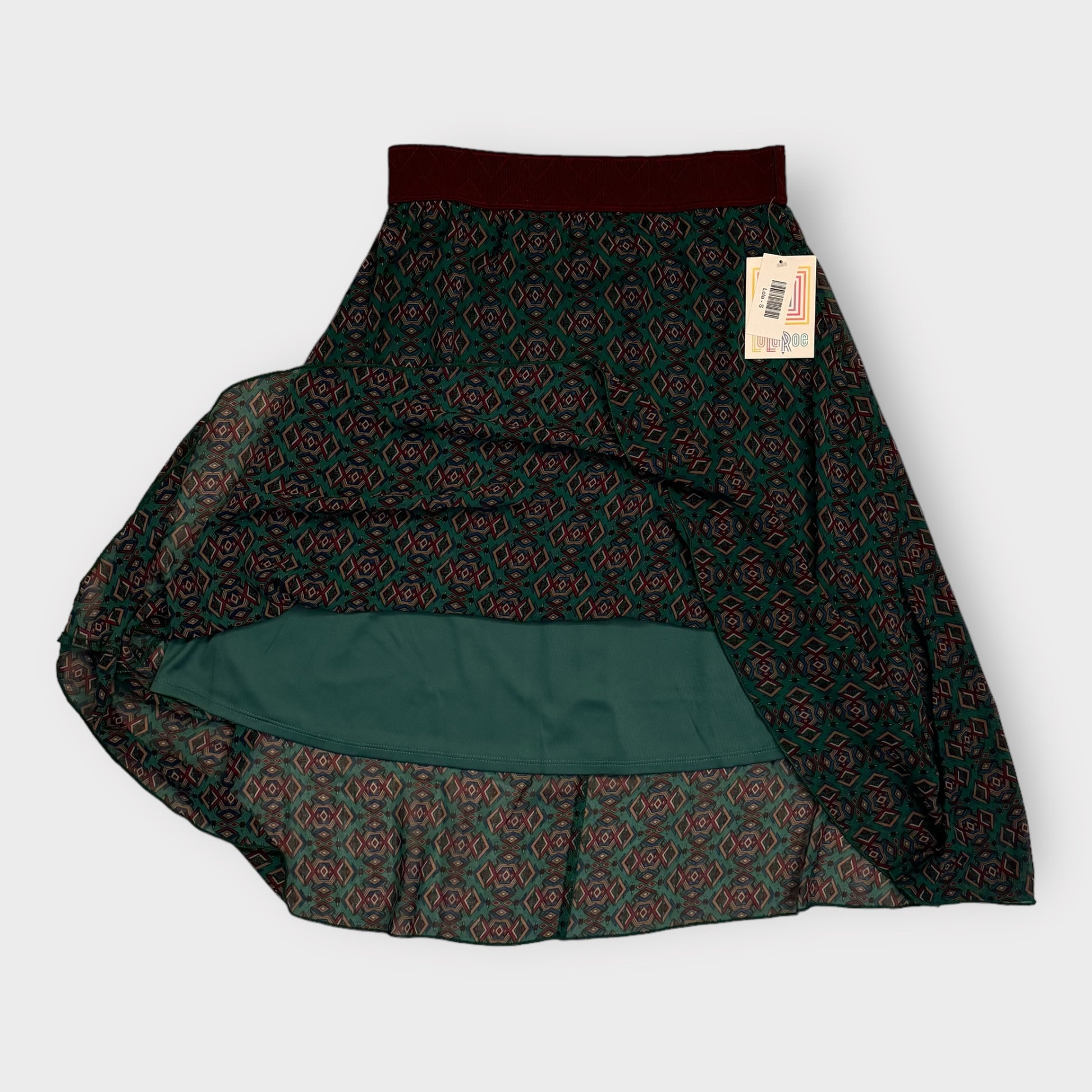 LuLaRoe Lined Lola Skirt | S | Brick Red/Green Geometric | NWT