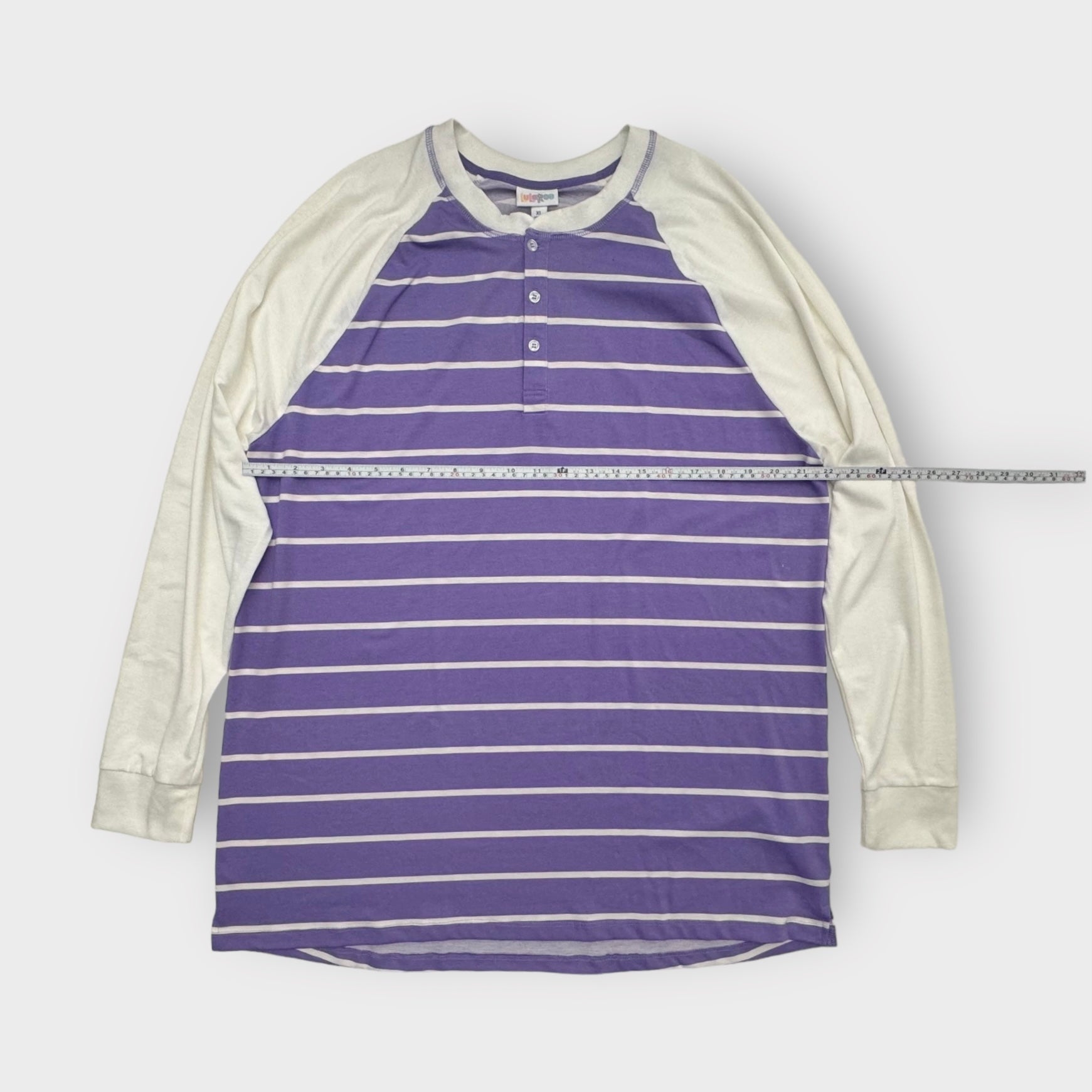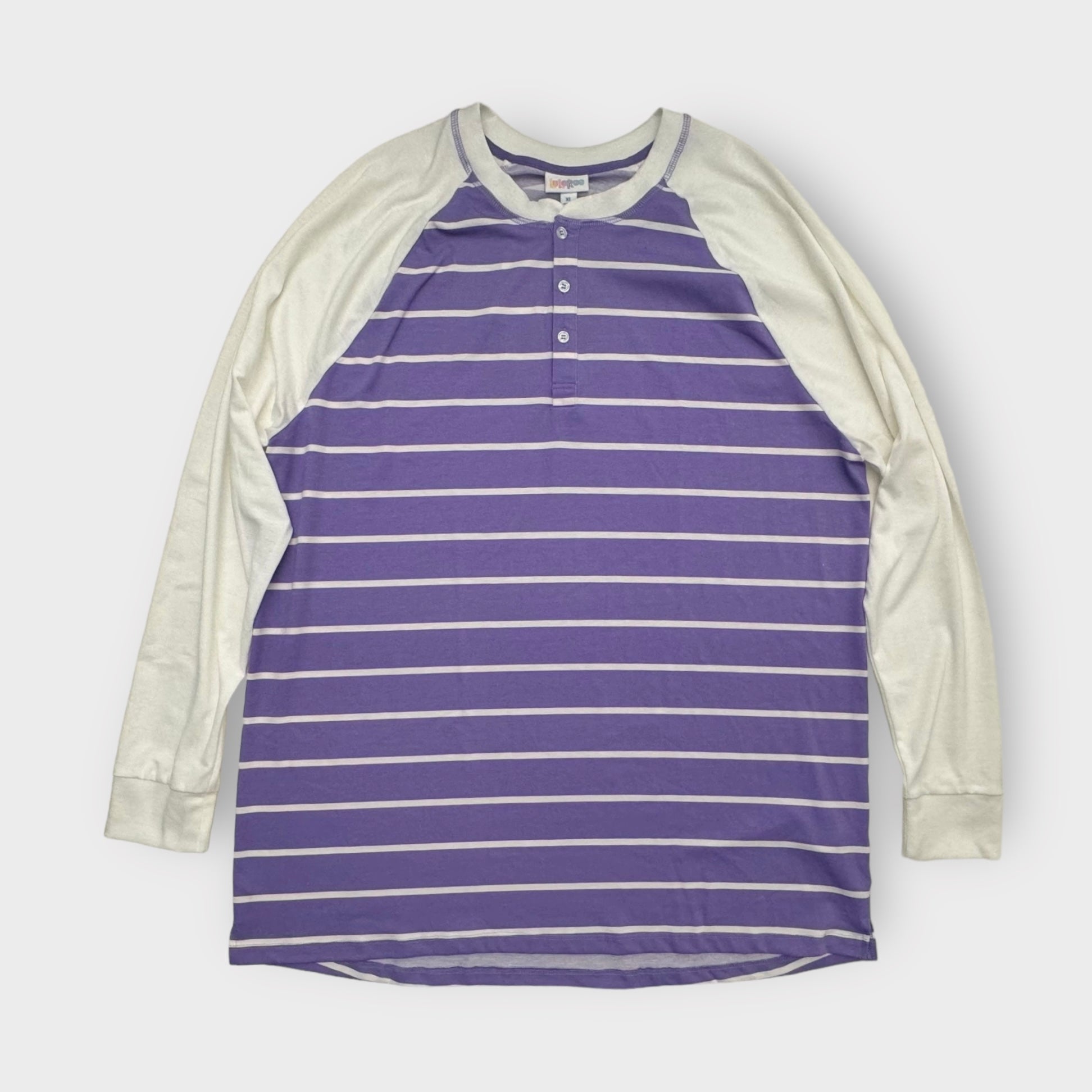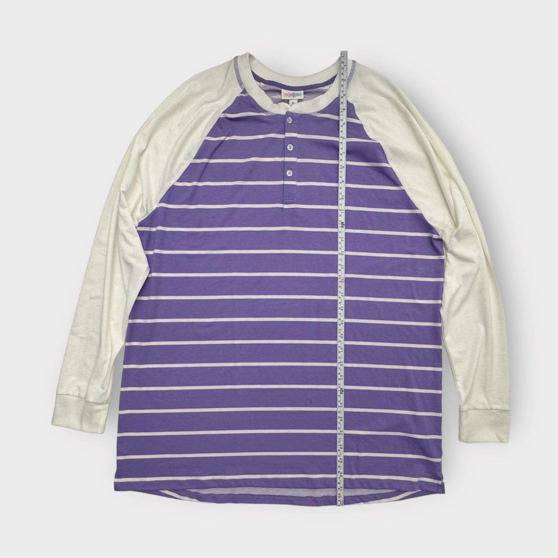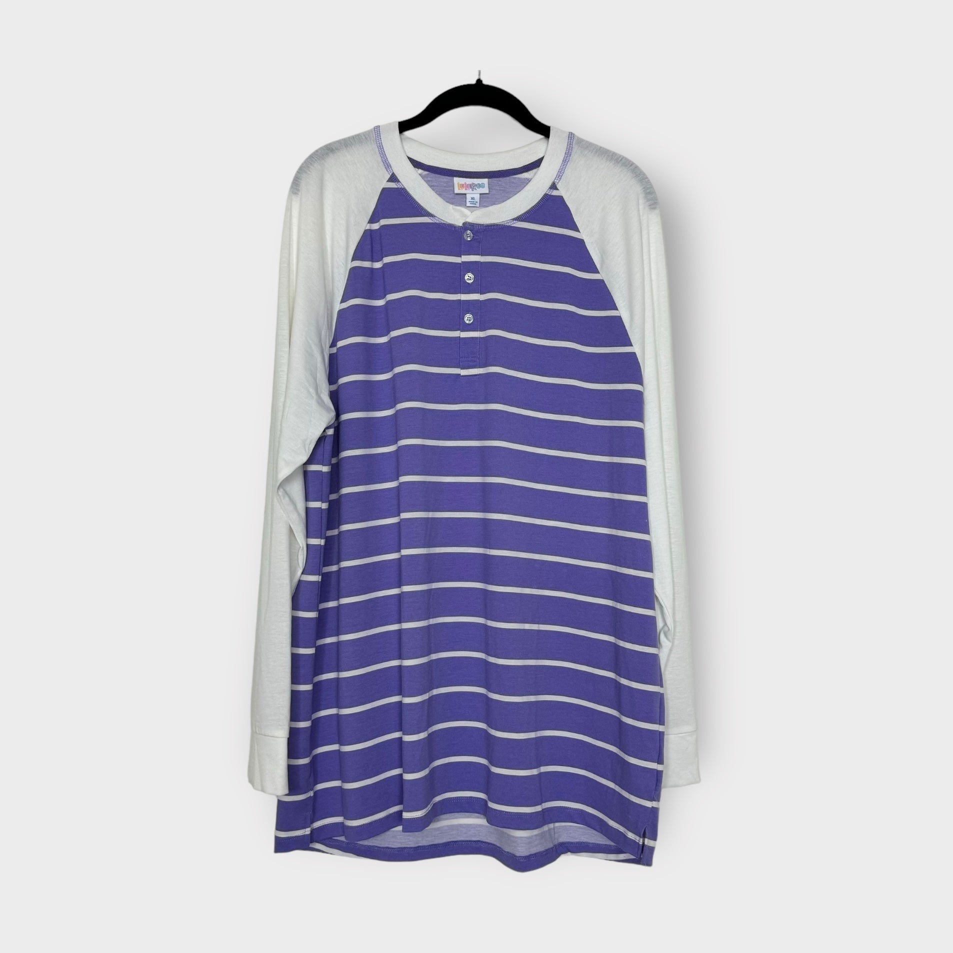 LuLaRoe Mark L/s Henley Top | XL | Purple/White Striped | NWT