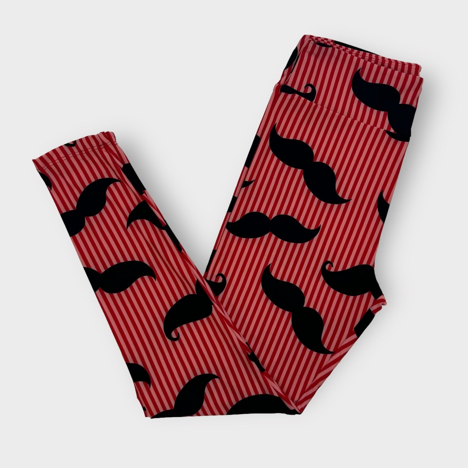 LuLaRoe | Print Leggings | OS (2-10) | Red | Striped/Mustaches | New