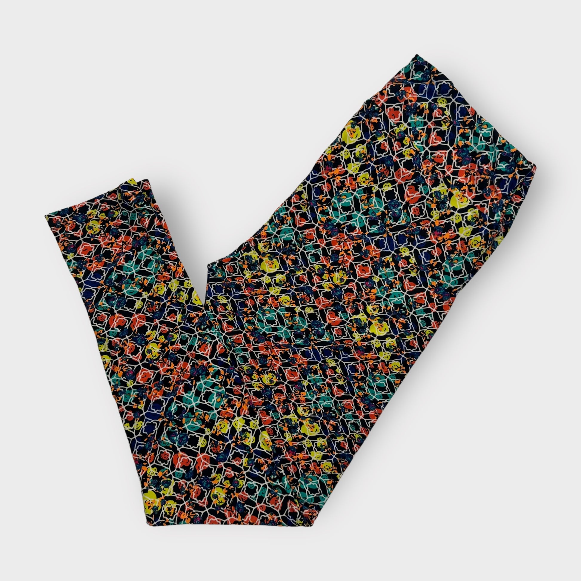 LuLaRoe Print Leggings | TC (12-18) | Black/Multicolor Geometric/Floral | New