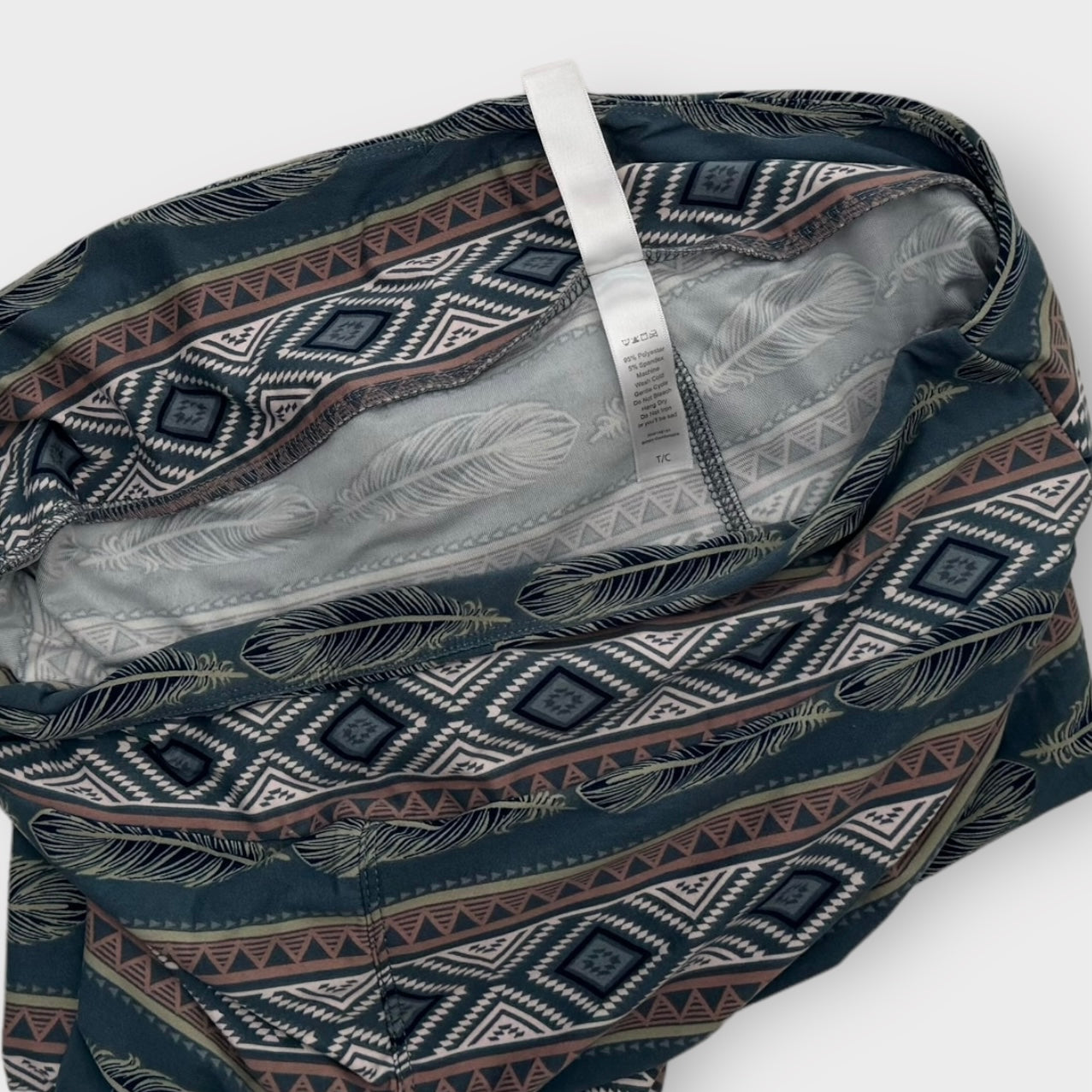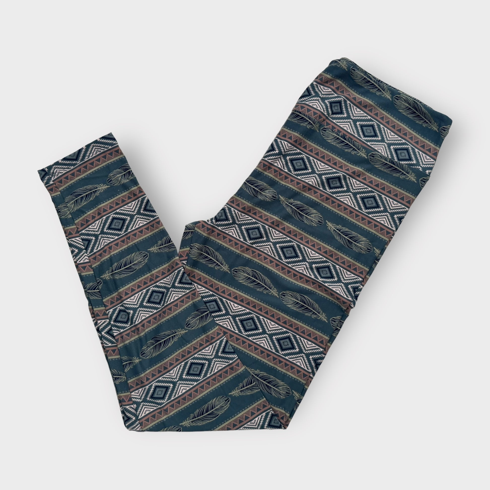 LuLaRoe Print Leggings | TC (12-18) | Green/White/Beige Southwestern/Feathers | New